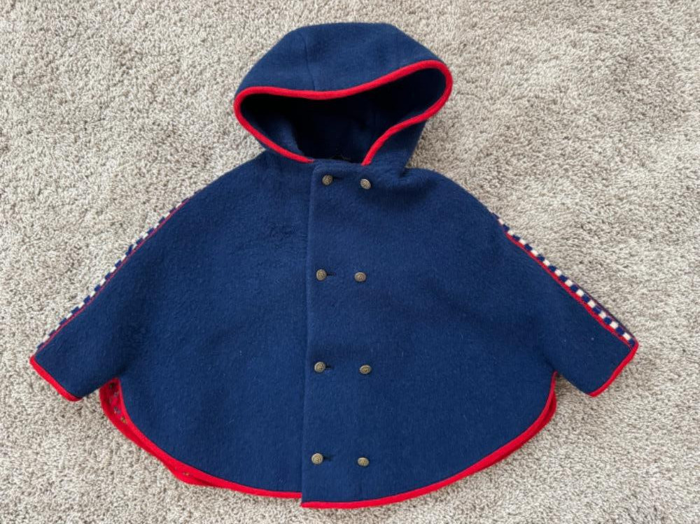 Lot # 26 - Swedish Wool Kids Poncho w/ Red Trim & Checkered Cuffs Starting Bid: $ 5.00 Bids: This sale will end in: |