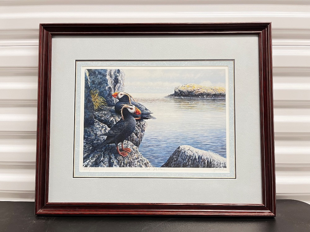 Lot # 143 - Ed Newbold Signed & Numbered Print – 'Tufted Puffins' (1990) – 125/950 Starting Bid: $ 5.00 Bids: This sale will end in: |