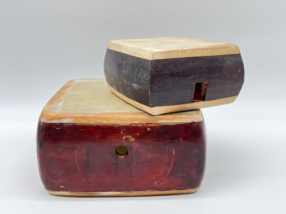 Lot # 142 - Pair of Handcrafted Wooden Percussion/Snare Drums – Leather & Wood Starting Bid: $ 5.00 Bids: This sale will end in: |