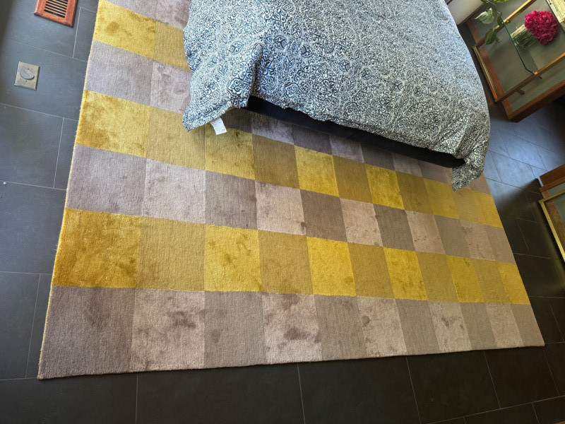 Lot # 32 - Wool Area Rug – 107x73” Yellow & Grey Geometric Block Pattern Starting Bid: $ 5.00 Bids: This sale will end in: |
