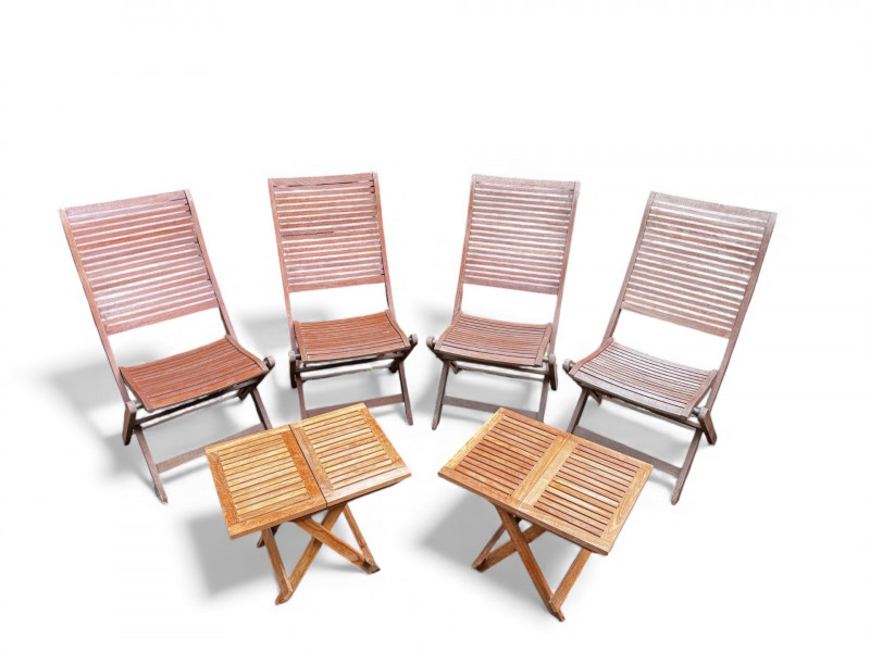Lot # 88 - Tensen Folding Outdoor Set – 4 Chairs & 2 Tables, Wood Slat Design Starting Bid: $ 5.00 Bids: This sale will end in: |