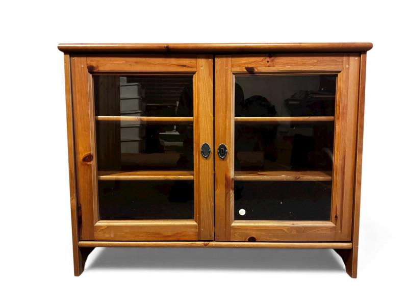 Lot # 111 - Wood Entertainment Stand w/ Glass Doors & Shelves Starting Bid: $ 5.00 Bids: This sale will end in: |