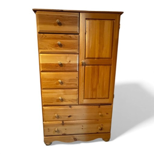 Lot # 112 - Pine Wood Dresser w/ 7 Drawers & Cabinet Door Starting Bid: $ 5.00 Bids: This sale will end in: |