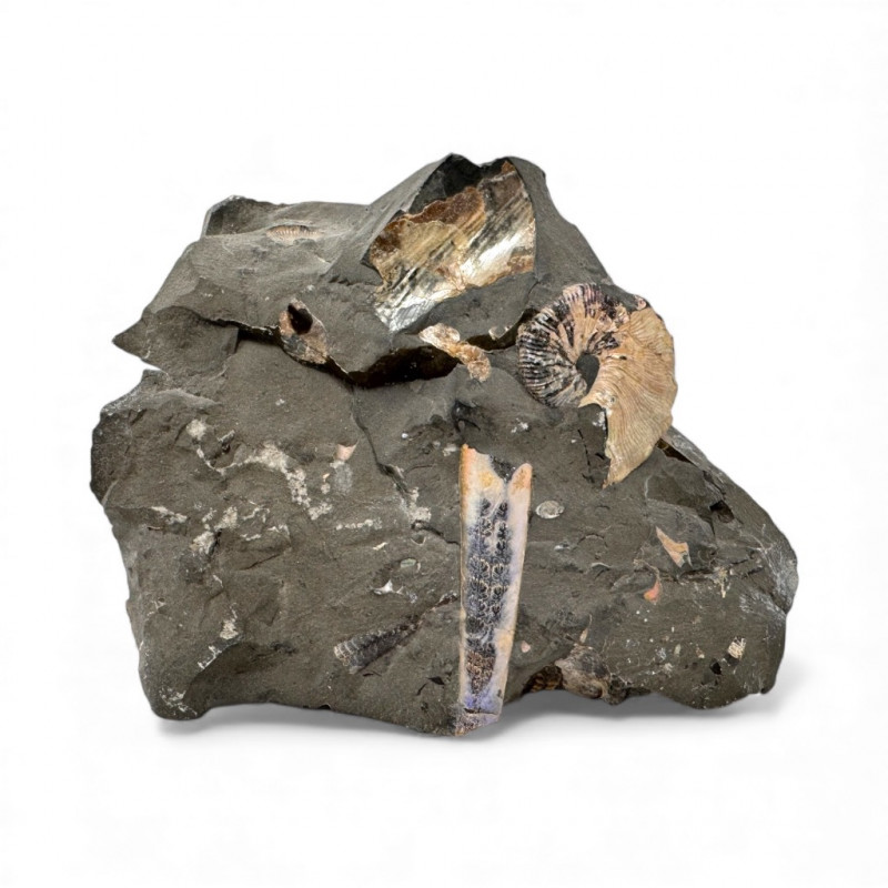 Lot # 56 - Opalized Ammonite & Orthoceras Fossil in Matrix Starting Bid: $ 5.00 Bids: This sale will end in: |