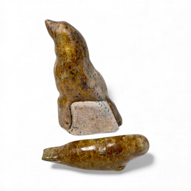 Lot # 63 - 2 Stone Seal Carvings – Large Inuit Style & Canadian Eskimo Art Starting Bid: $ 5.00 Bids: This sale will end in: |