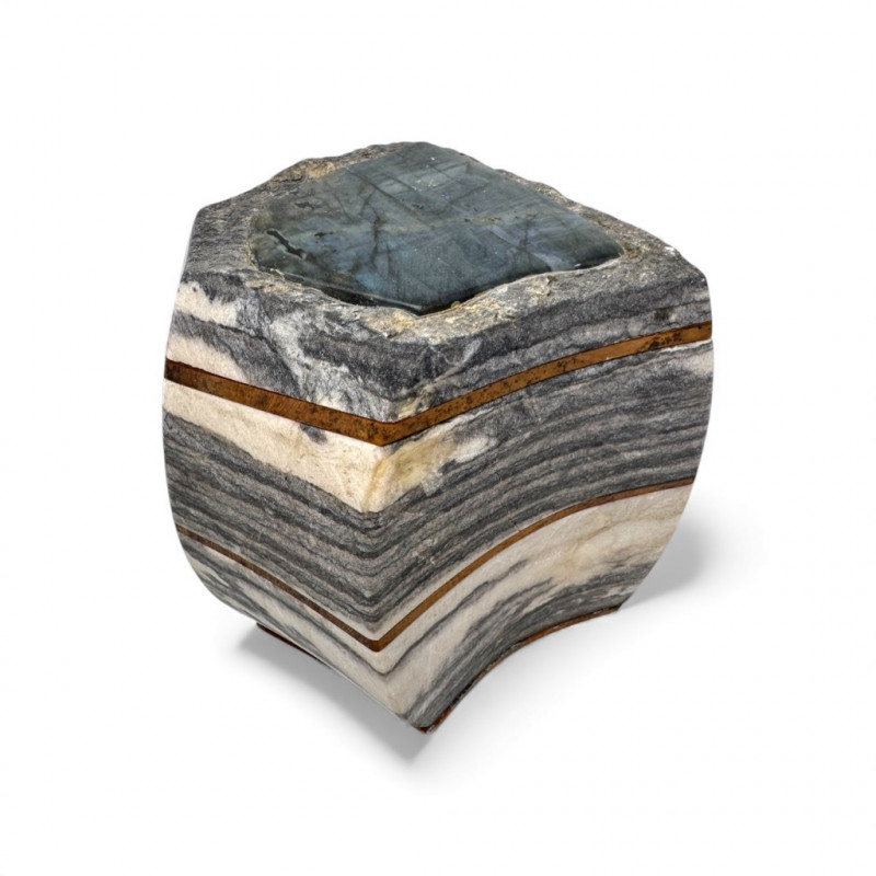 Lot # 64 - Handcrafted Labradorite & Alabaster Hidden Trinket Box – Large Starting Bid: $ 5.00 Bids: This sale will end in: |