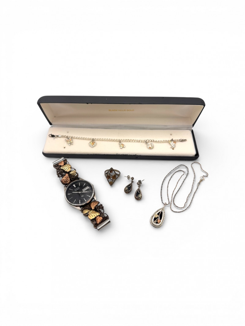 Lot # 46 - Sterling Silver & 12K Black Hills Gold – Seiko Watch, Pendant, Ring + Starting Bid: $ 5.00 Bids: This sale will end in: |