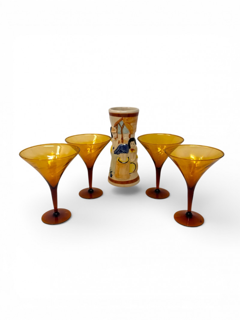 Lot # 27 - Amber Martini Glasses Set of 4 w/ Trader Vic’s Tiki Vase 1984 Starting Bid: $ 5.00 Bids: Bidding starts in: |