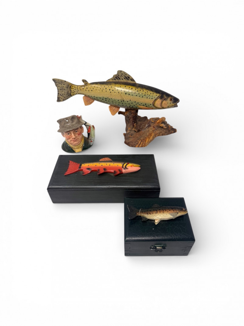 Lot # 28 - Royal Doulton Angler Jug w/ Carved Fish & Box Collectibles Starting Bid: $ 5.00 Bids: Bidding starts in: |