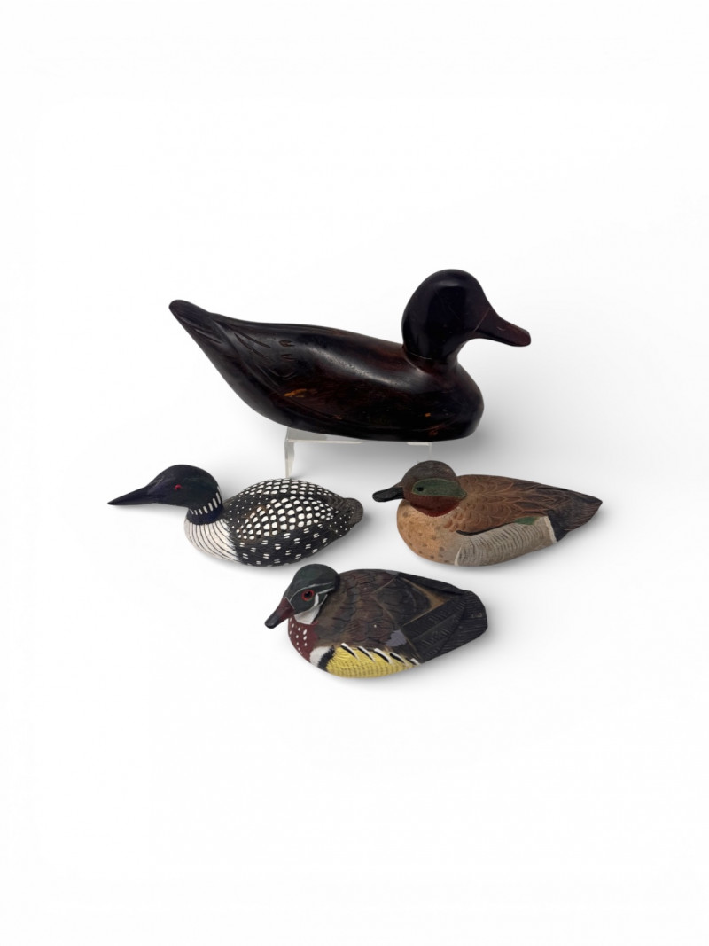 Lot # 29 - Carved Duck & Loon Decoy Figures - Ironwood & Bonded Wood Starting Bid: $ 5.00 Bids: Bidding starts in: |