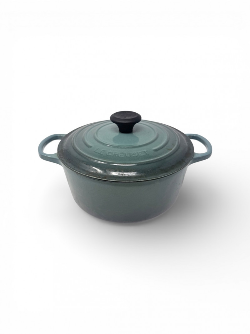Lot # 34 - Le Creuset No. 24 Enameled Cast Iron Dutch Oven Ocean Teal Starting Bid: $ 5.00 Bids: Bidding starts in: |