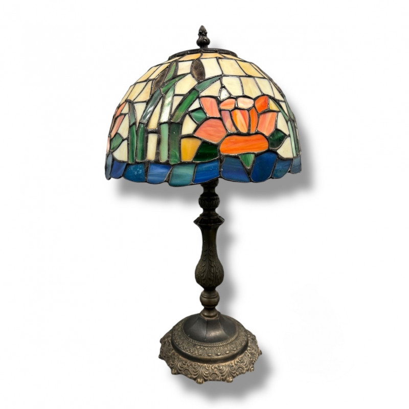Lot # 26 - Mini Tiffany-Style Stained Glass Table Lamp Floral Shade Starting Bid: $ 5.00 Bids: Bidding starts in: |