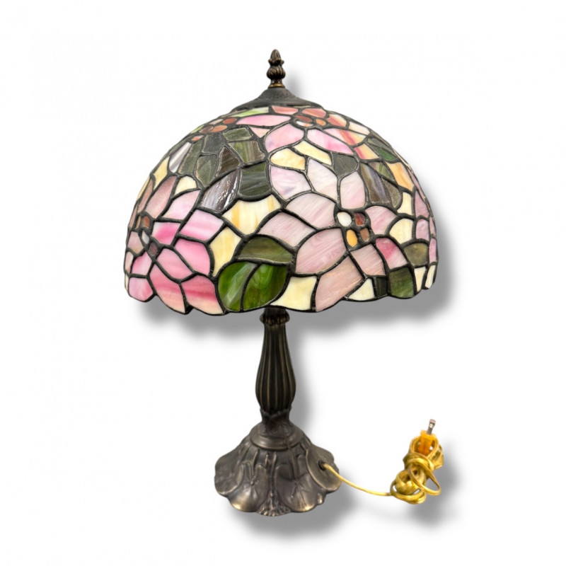Lot # 49 - Tiffany-Style Stained Glass Lamp - Pink Blossom & Floral Base Starting Bid: $ 5.00 Bids: Bidding starts in: |