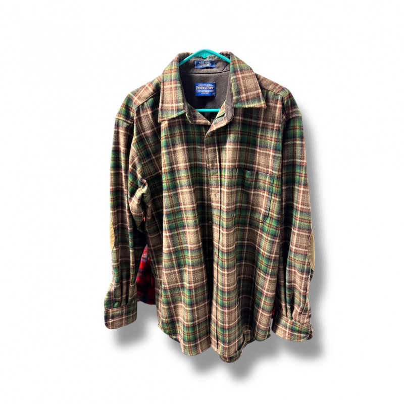 Lot # 93 - Pendleton Green/Brown Plaid Trail Shirt w/ Elbow Patches - Large/Men Starting Bid: $ 5.00 Bids: Bidding starts in: |