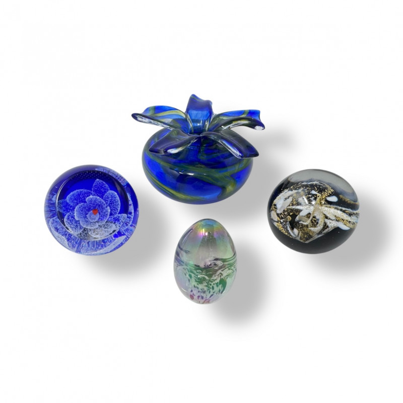 Lot # 86 - Art Glass Paperweights - Vase, Egg, & Orbs, Signed & Marked Pieces Starting Bid: $ 5.00 Bids: Bidding starts in: |