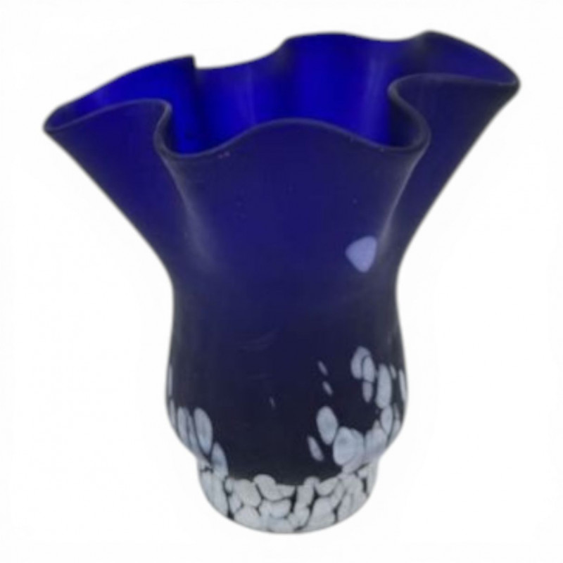 Lot # 151 - Blue Art Glass Vase w/ Ruffled Rim & White Pebble Base Starting Bid: $ 5.00 Bids: Bidding starts in: |