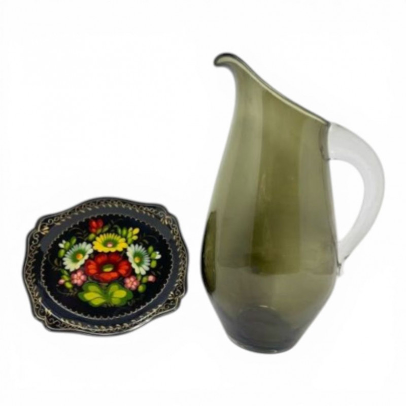 Lot # 160 - Signed Green Art Glass Pitcher + Hand Painted Russian Floral Tray Starting Bid: $ 5.00 Bids: Bidding starts in: |