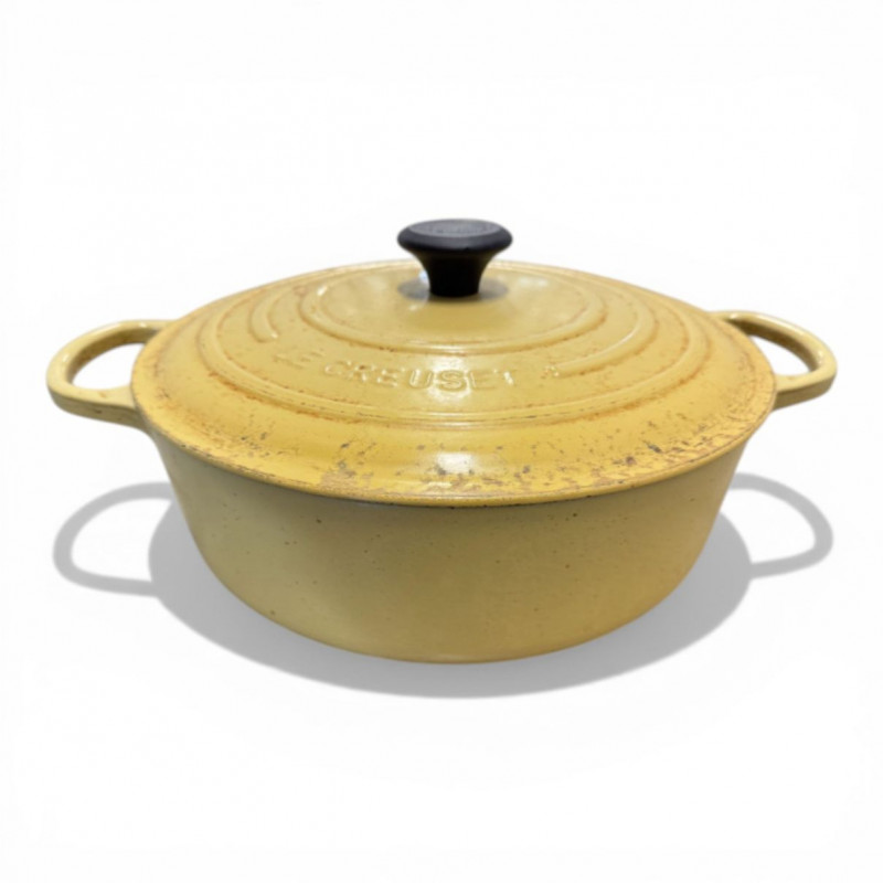 Lot # 166 - Le Creuset Cast Iron Dutch Oven, Yellow Size 30 - France Starting Bid: $ 5.00 Bids: Bidding starts in: |