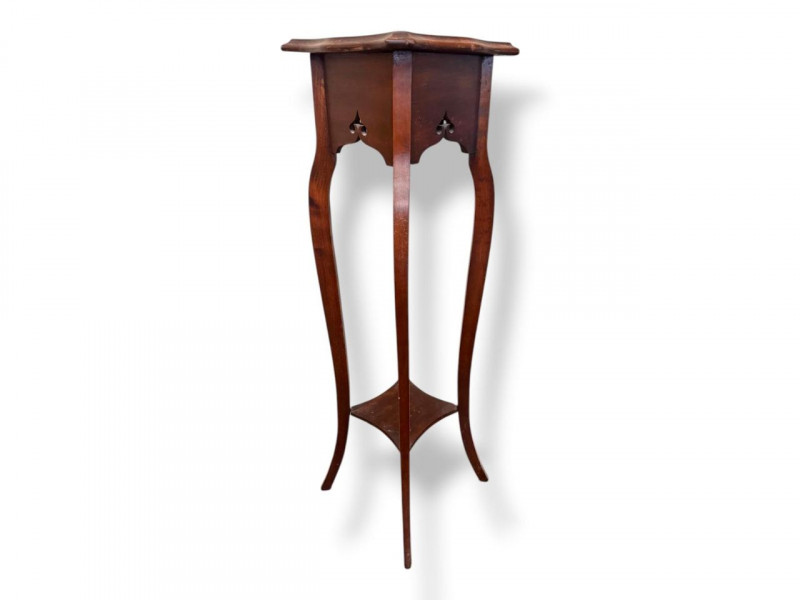Lot # 133 - Antique Tall Wood Plant Stand w/ Curved Legs & Shelf Starting Bid: $ 5.00 Bids: This sale will end in: |