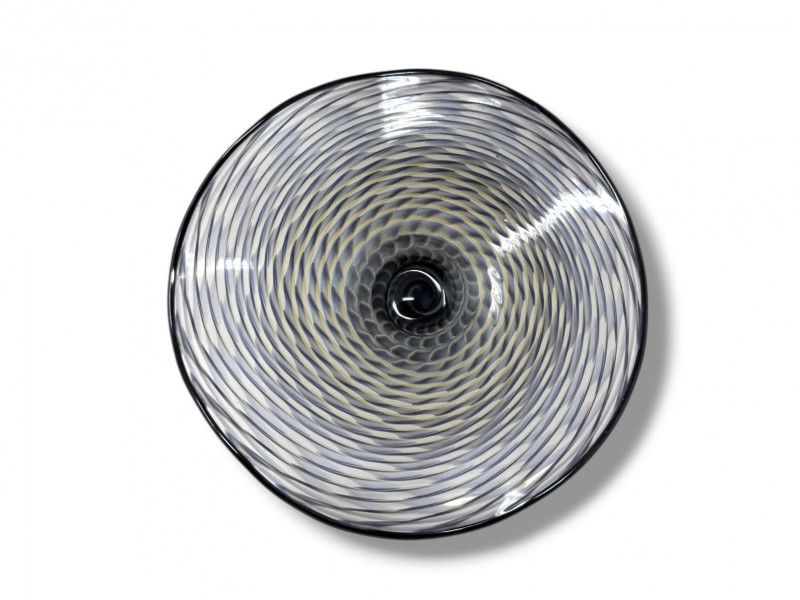 Lot # 97 - Signed Art Glass Bowl 2008 – Hand Blown Swirl Pattern Footed Dish Starting Bid: $ 5.00 Bids: Bidding starts in: |