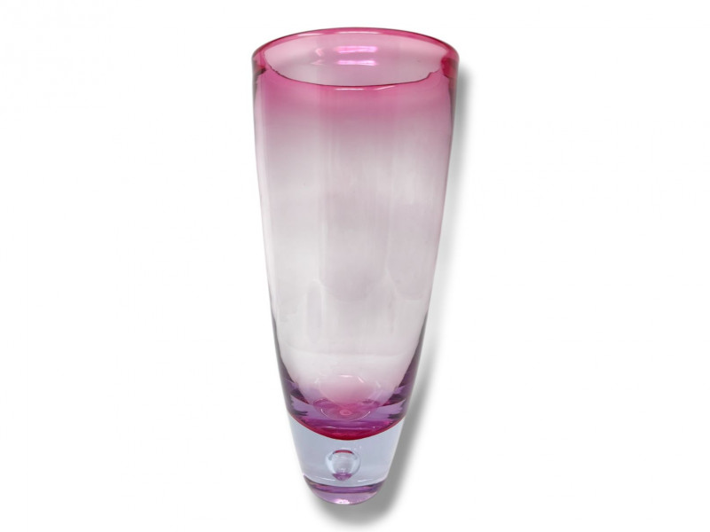Lot # 98 - Hand Blown Tall Pink Glass Vase w/ Clear Base Starting Bid: $ 5.00 Bids: Bidding starts in: |