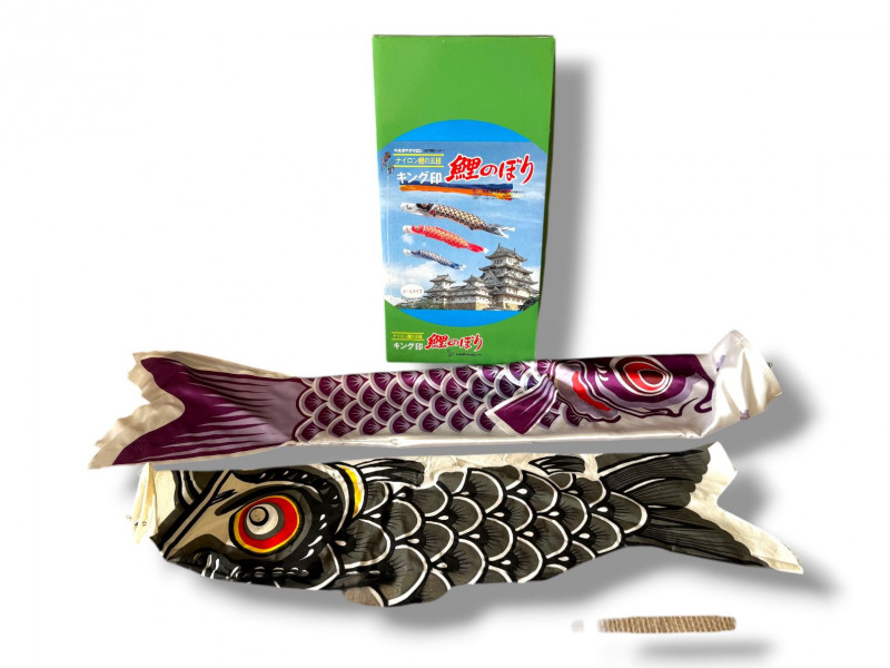 Lot # 123 - Japanese Koinobori Carp Windsock Set w/ Pole & Accessories in Box Starting Bid: $ 5.00 Bids: Bidding starts in: |