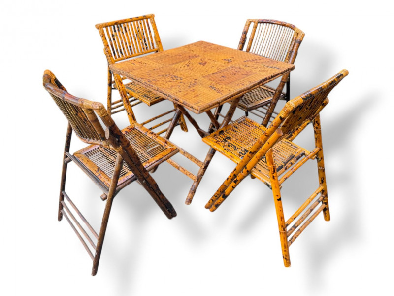 Lot # 164 - Folding Bamboo Style Patio Set w/ Square Table & Four Chairs Starting Bid: $ 5.00 Bids: Bidding starts in: |