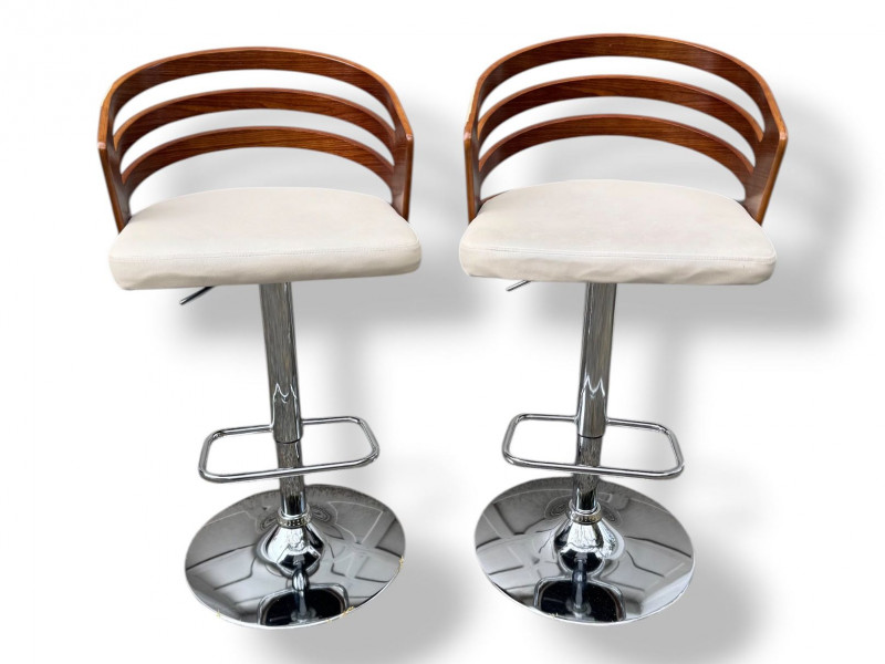 Lot # 181 - Adjustable Swivel Bar Stools w/ Wood Slat Backs & Chrome Bases Starting Bid: $ 5.00 Bids: Bidding starts in: |