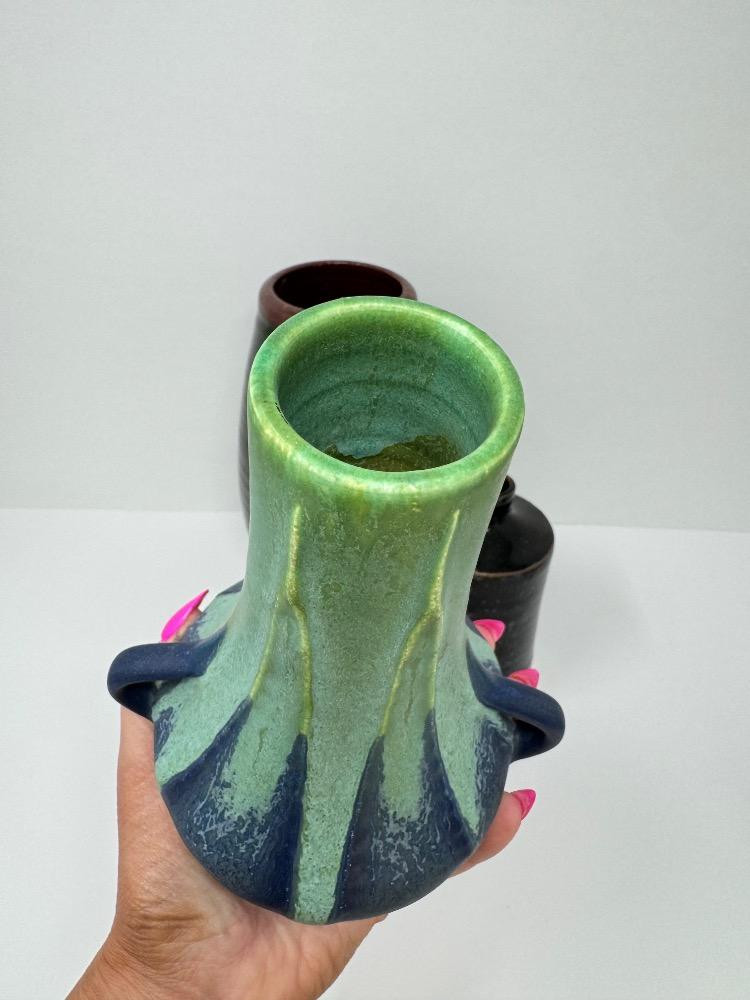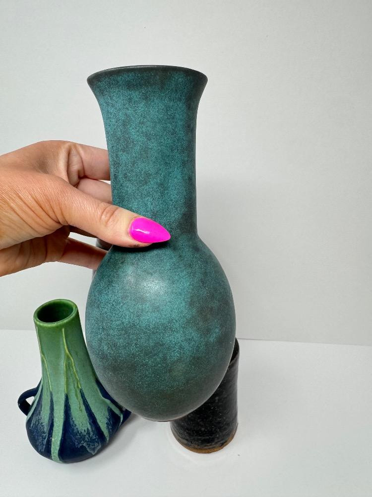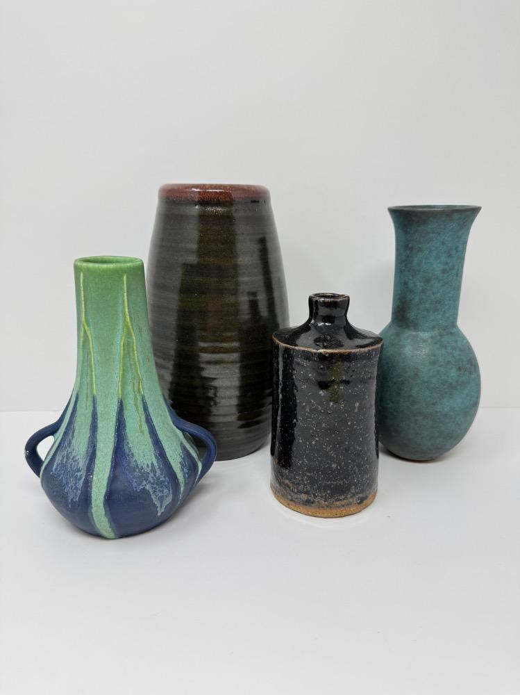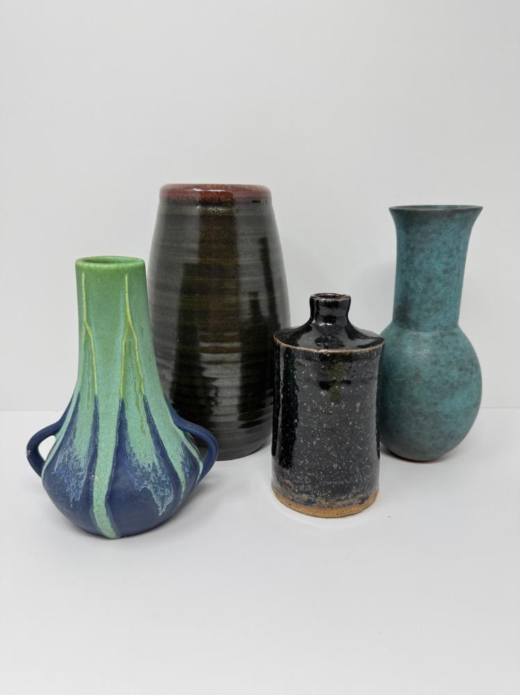 4 Studio Pottery Vases: 1989 & TOM Marks, Varied Styles & Glazes. 6-9”