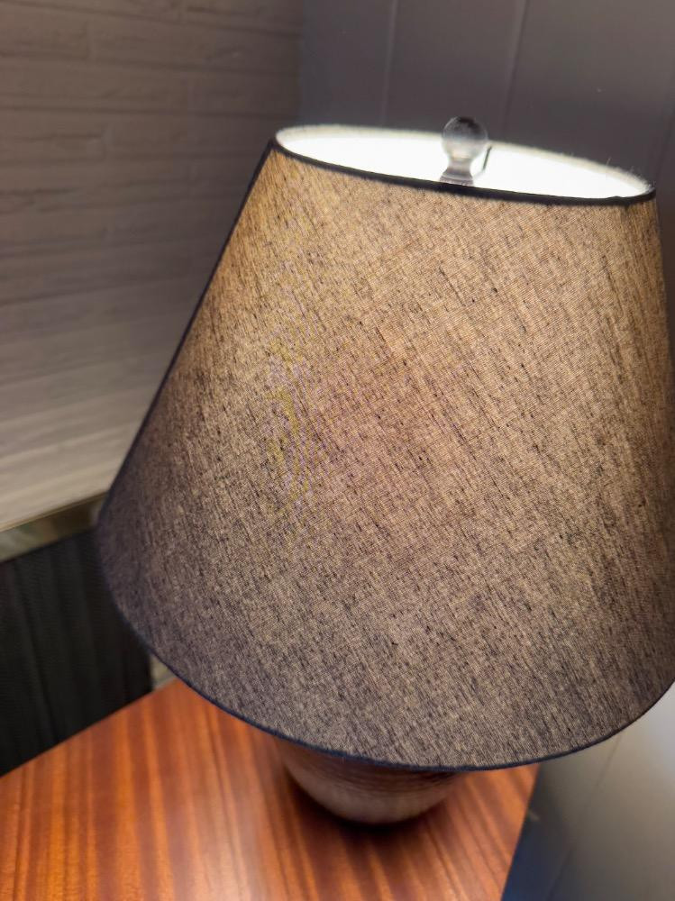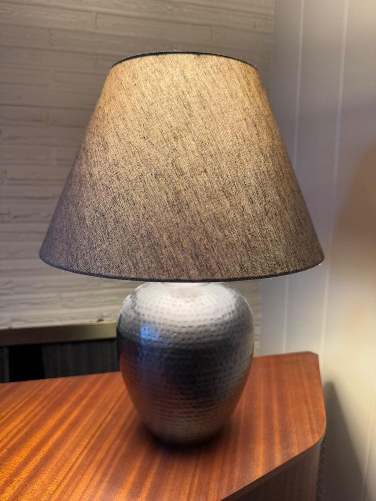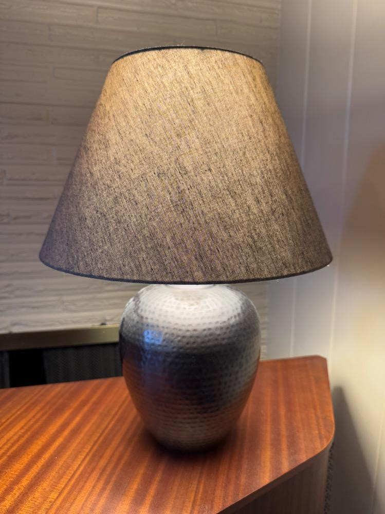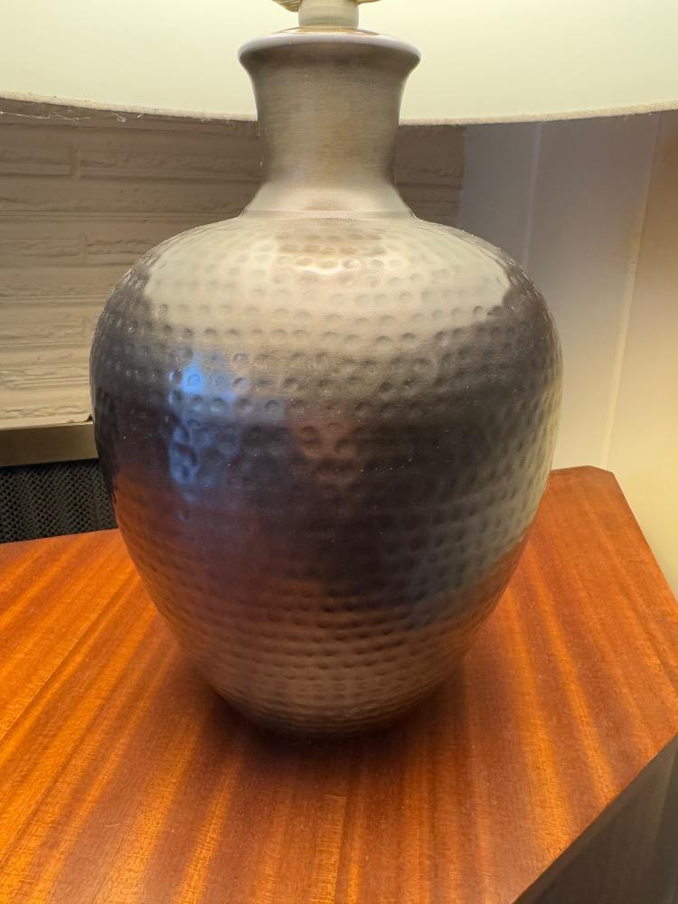 Lot # 84 - Hammered Metal Table Lamp w/ Fabric Shade – Modern Industrial Style