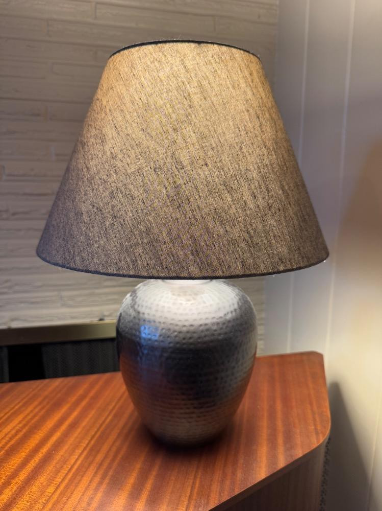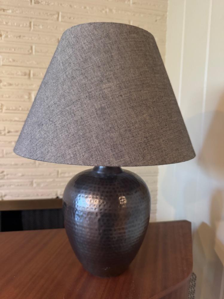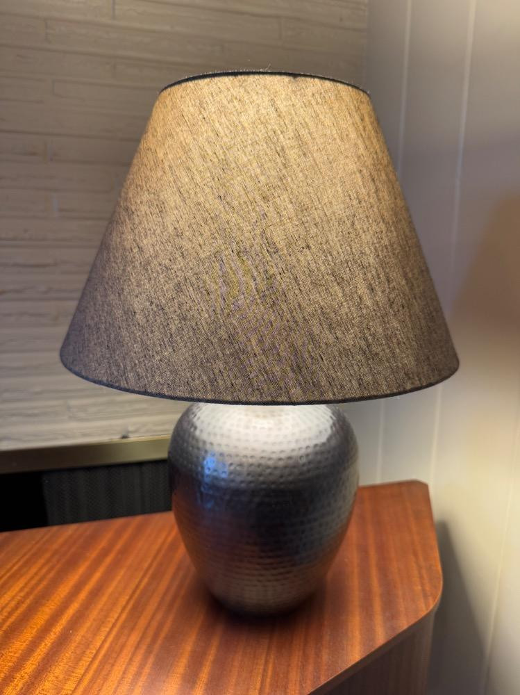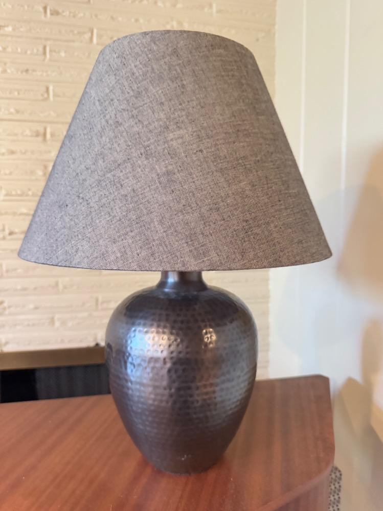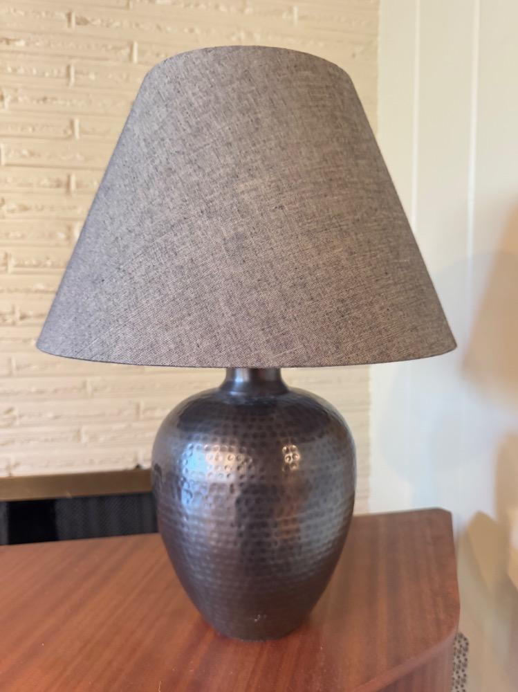Hammered Metal Table Lamp w/ Fabric Shade – Modern Industrial Style. 19” Tall 13” Wide