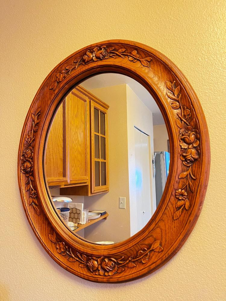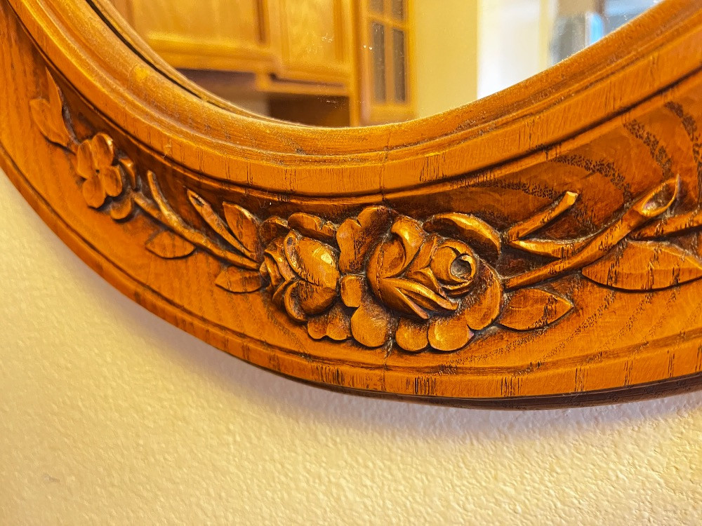 Lot # 10 - Hand-Carved Oval Mirror – Cabbage Rose Wood Design