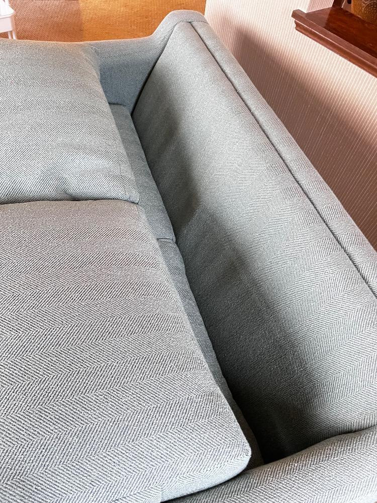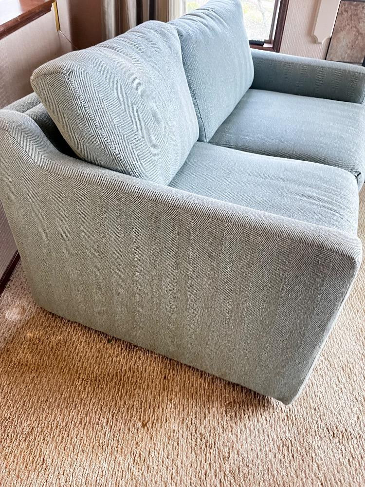 Lot # 54 - Compact 2-Seater Teal Love Seat - Upholstered Sofa, Textured Fabric