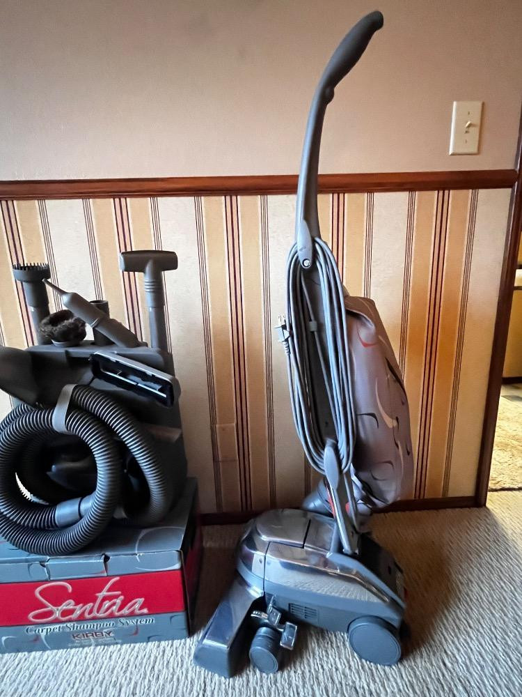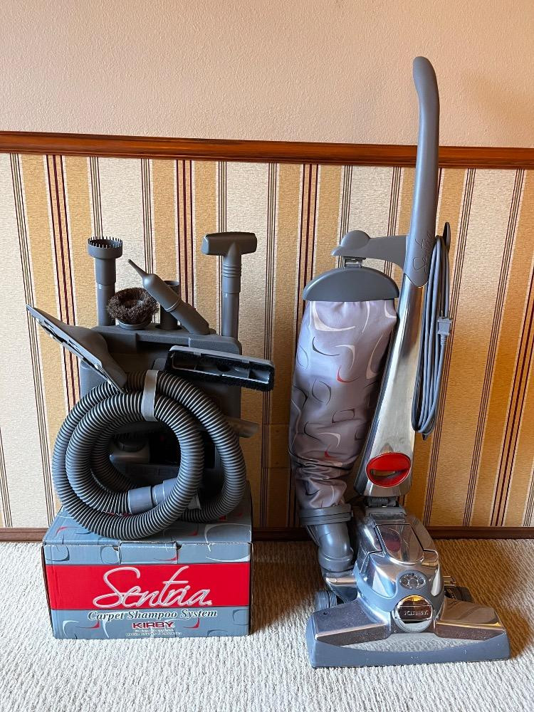 Kirby Sentria Vacuum & Carpet Shampoo System + Attachments. Bidding on this lot is an agreement that: (1.) You will have at least 2 capable, able bodied persons to lift and load at a minimum. (2.) You will bring a hand truck and/or any other tools needed to remove this item. If these steps are not followed your item will be forfeit and no refund given.
