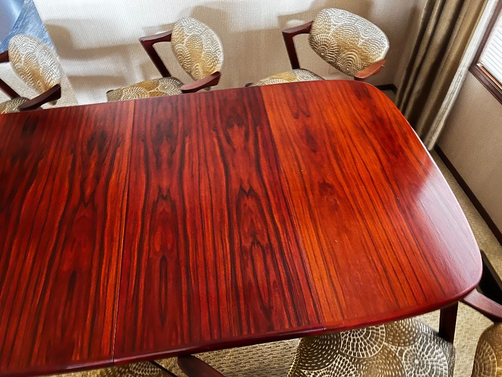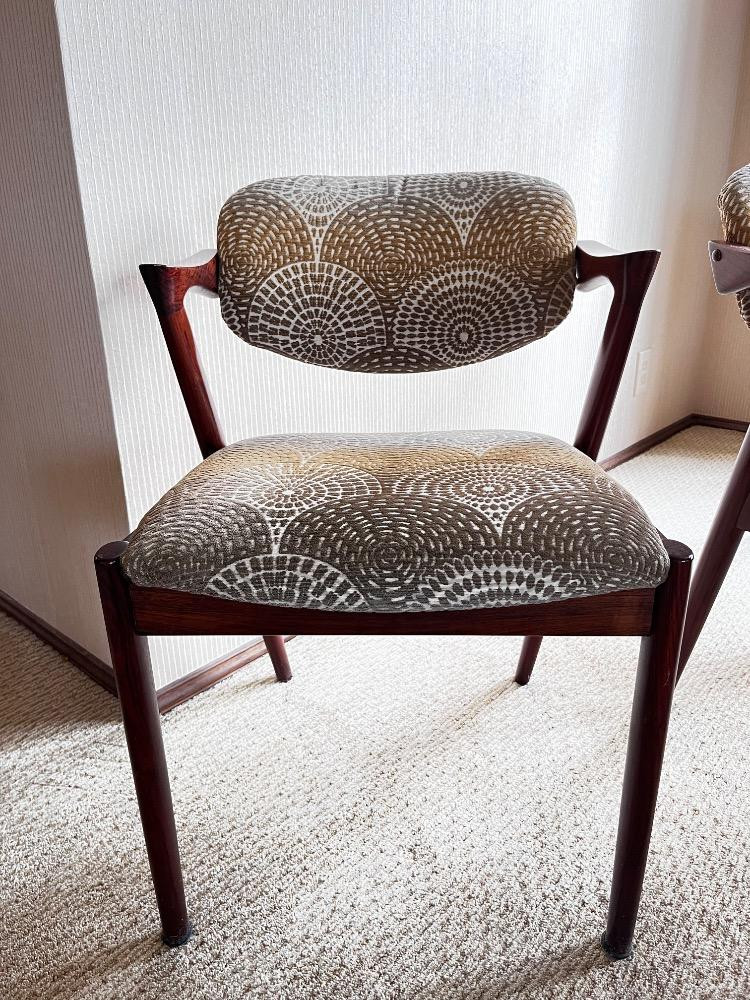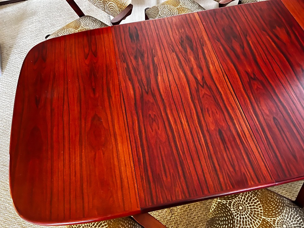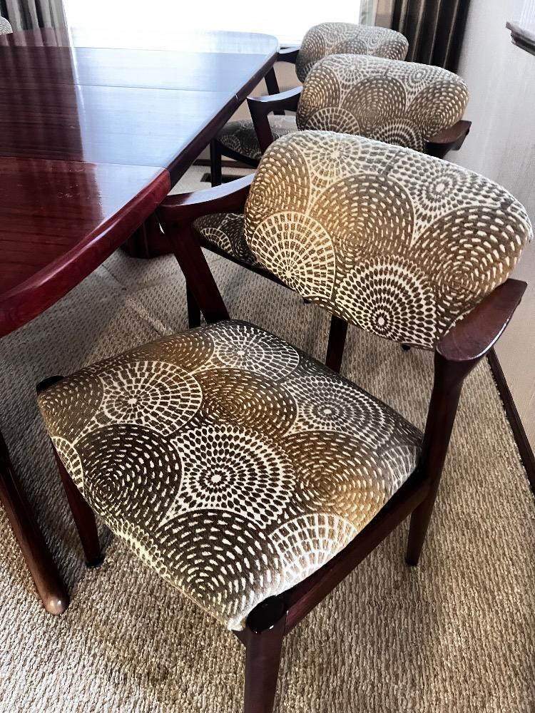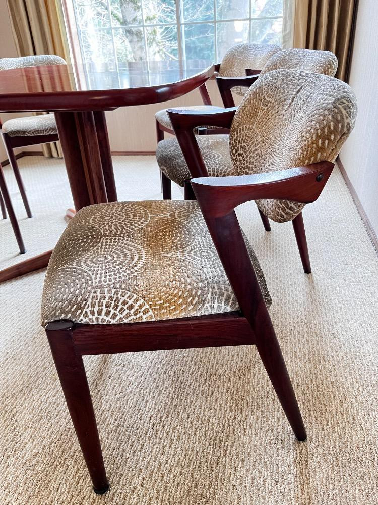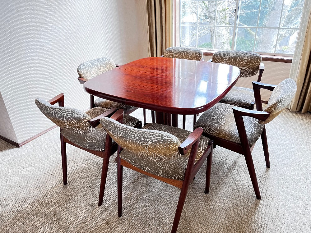 Vintage MCM Split Pedestal Extendable Table + 6 Upholstered Z-Chairs. ***Possibly Kai Kristianson*** Leaves x 2 - 20" Each Table: