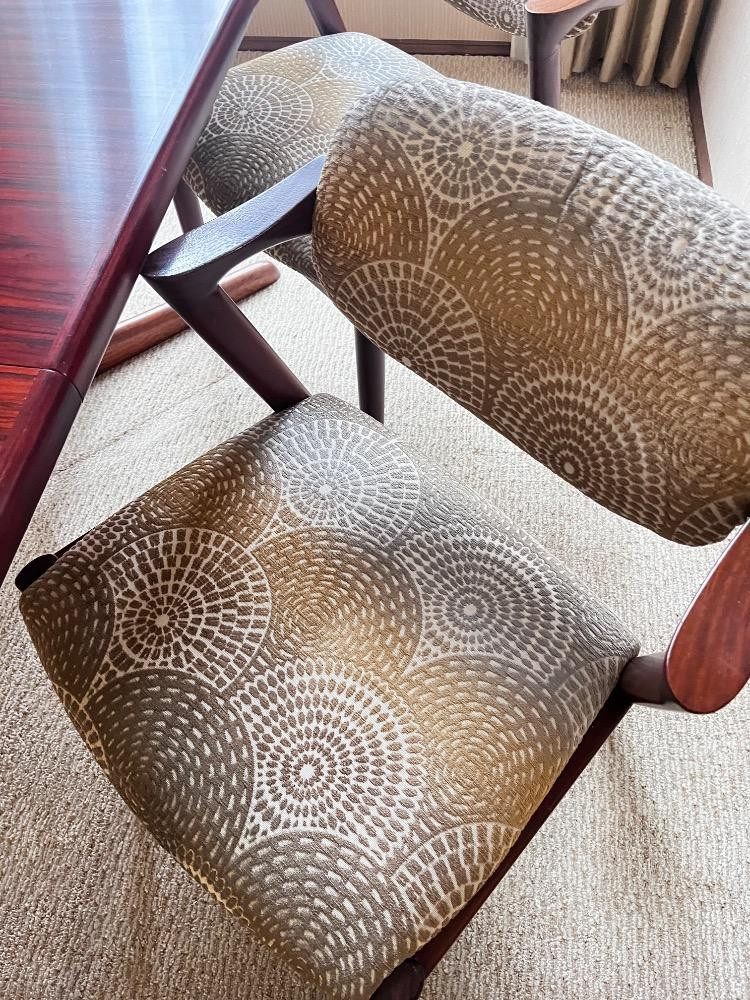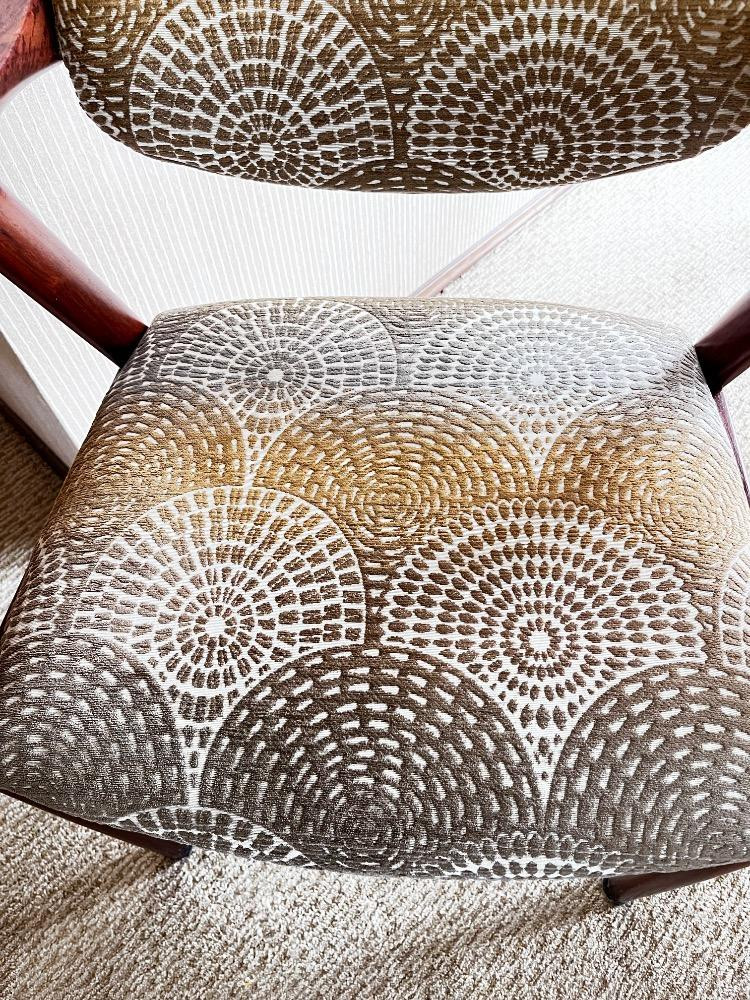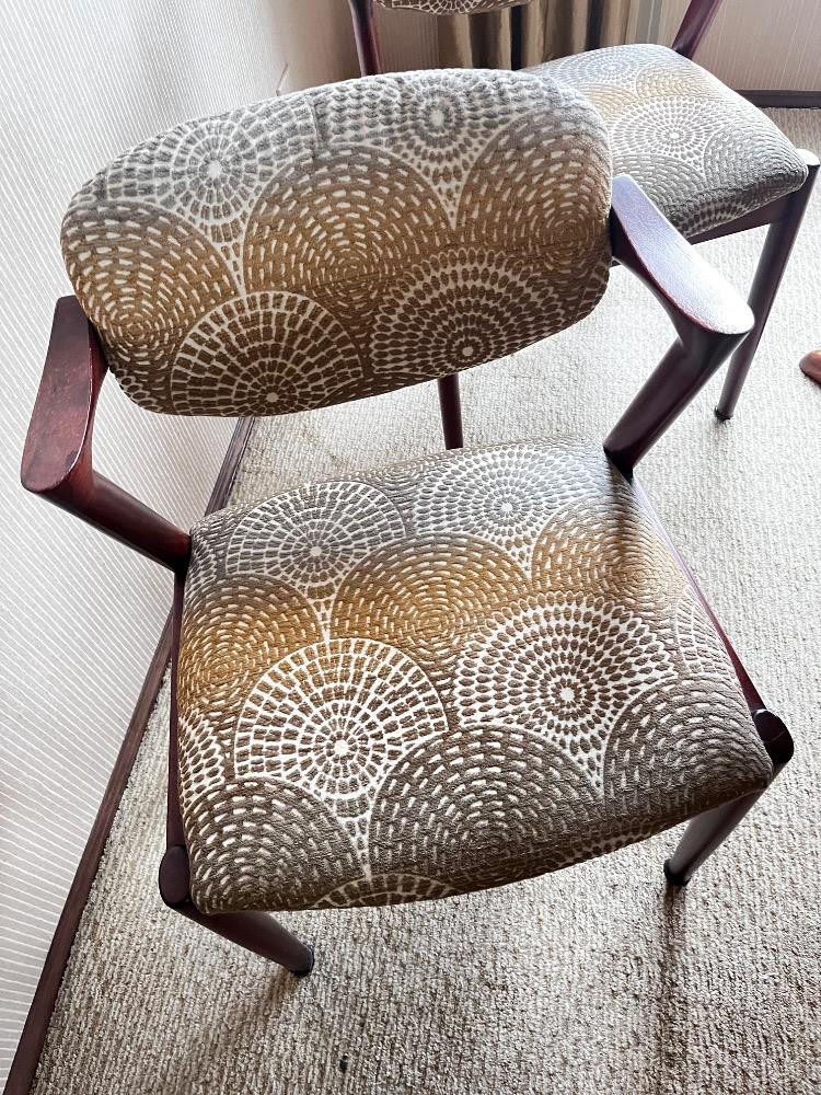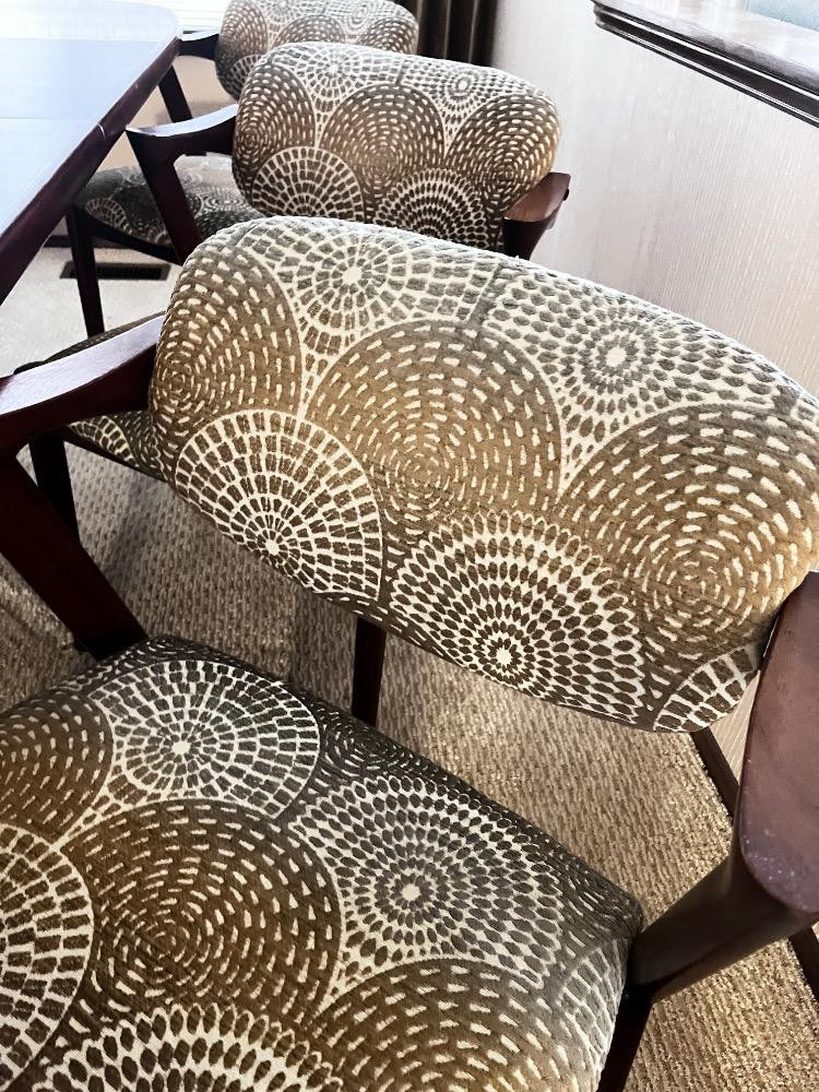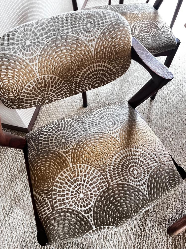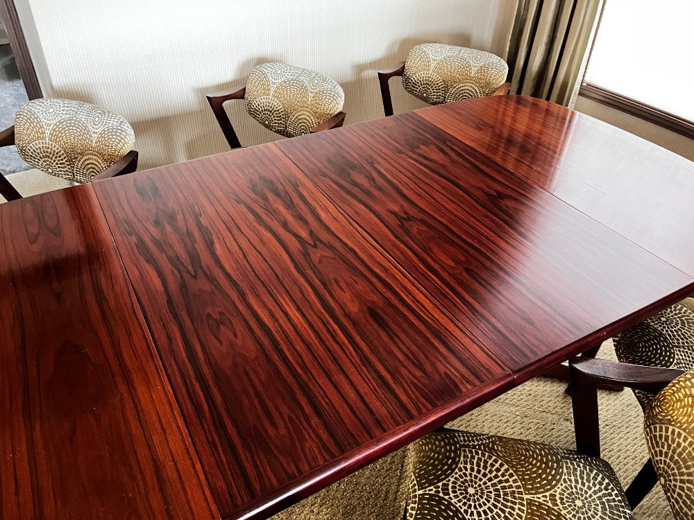 Vintage MCM Split Pedestal Extendable Table + 6 Upholstered Z-Chairs. ***Possibly Kai Kristianson*** Leaves x 2 - 20" Each Table: