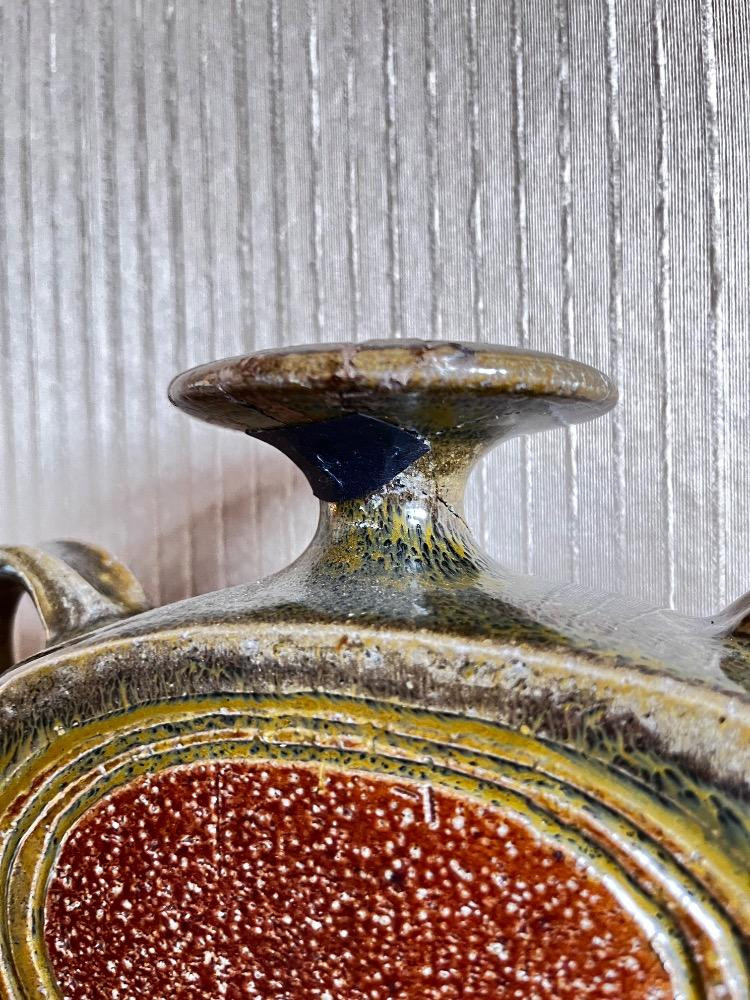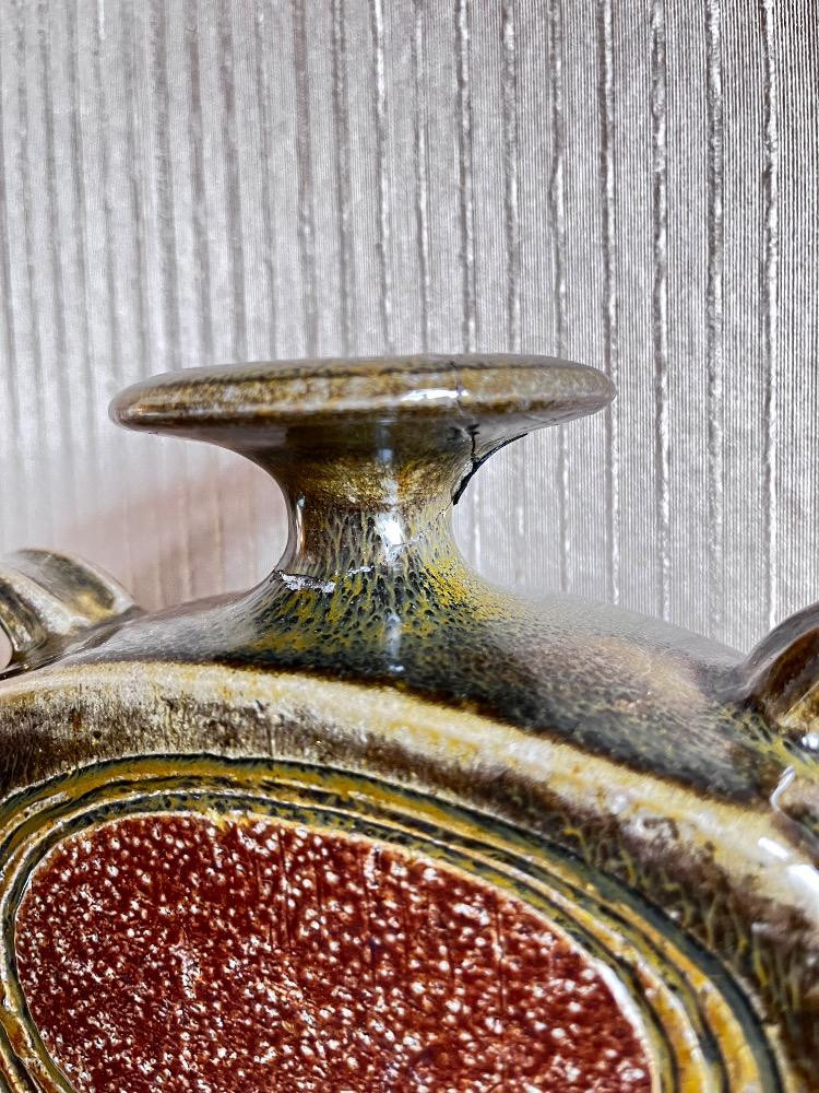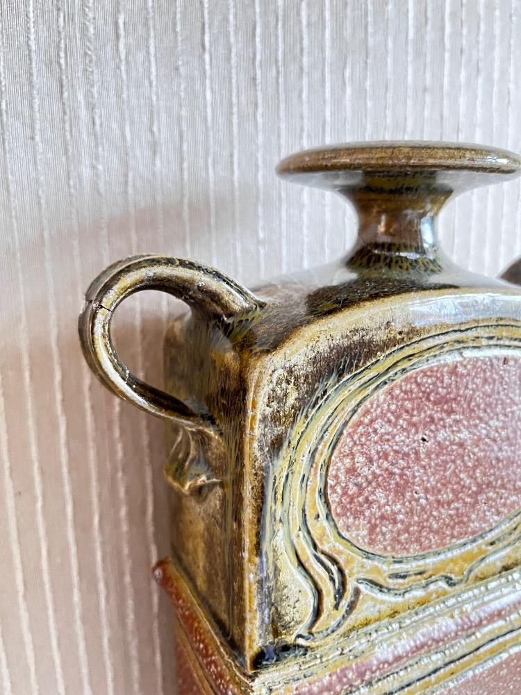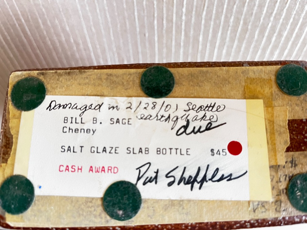 Salt Glaze Slab Bottle by Bill B. Sage from Cheney. This bottle was cracked on the top during the historic Seattle earthquake on February 28, 2001.