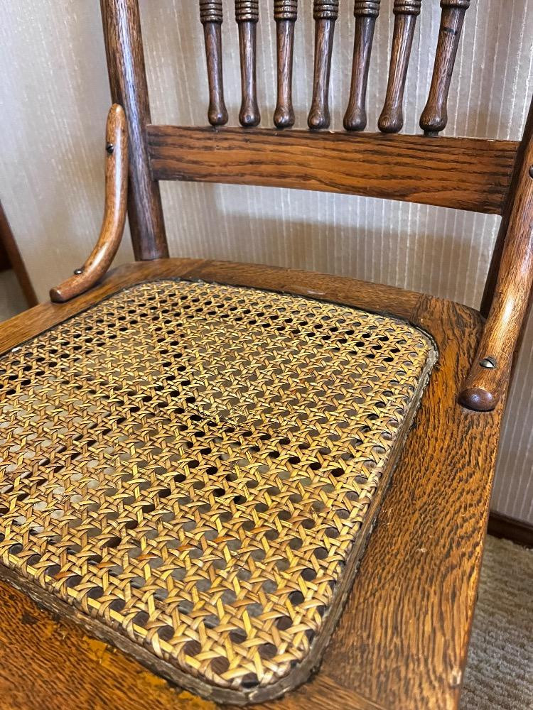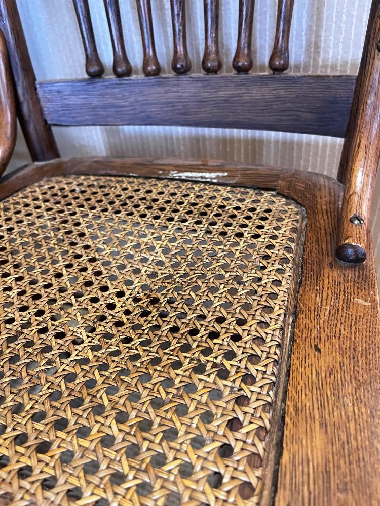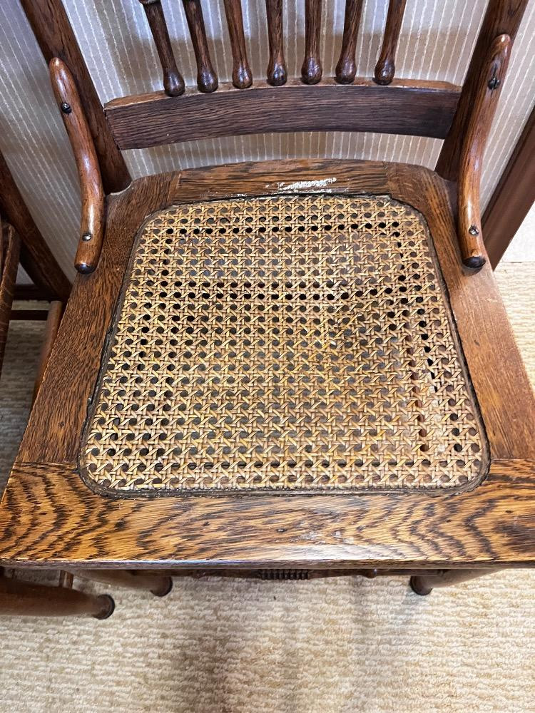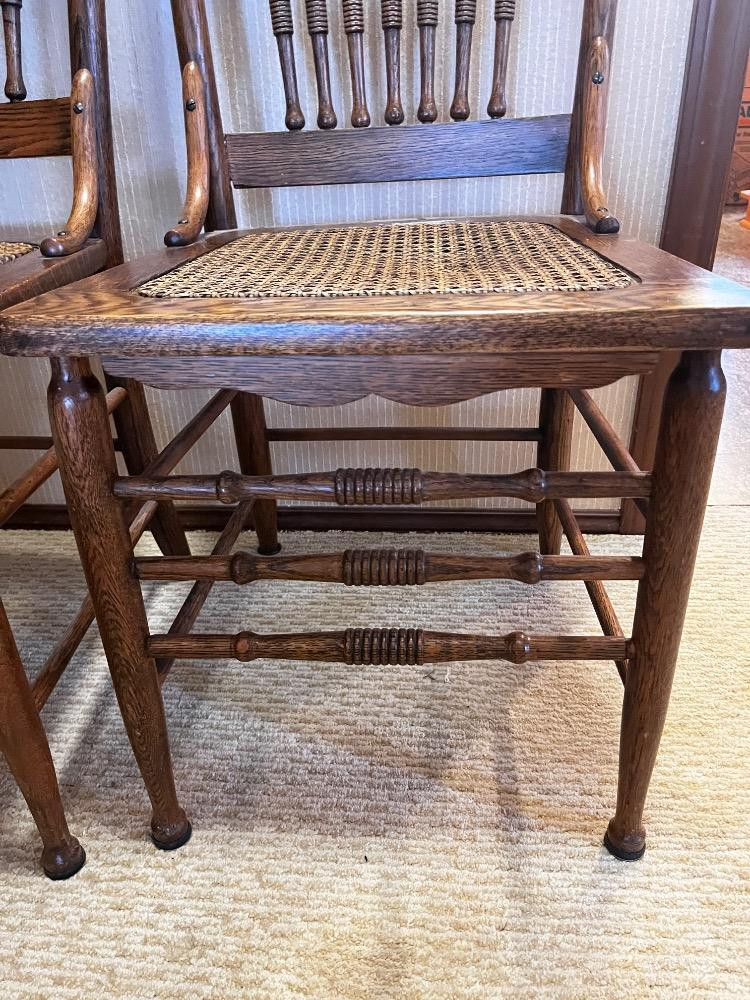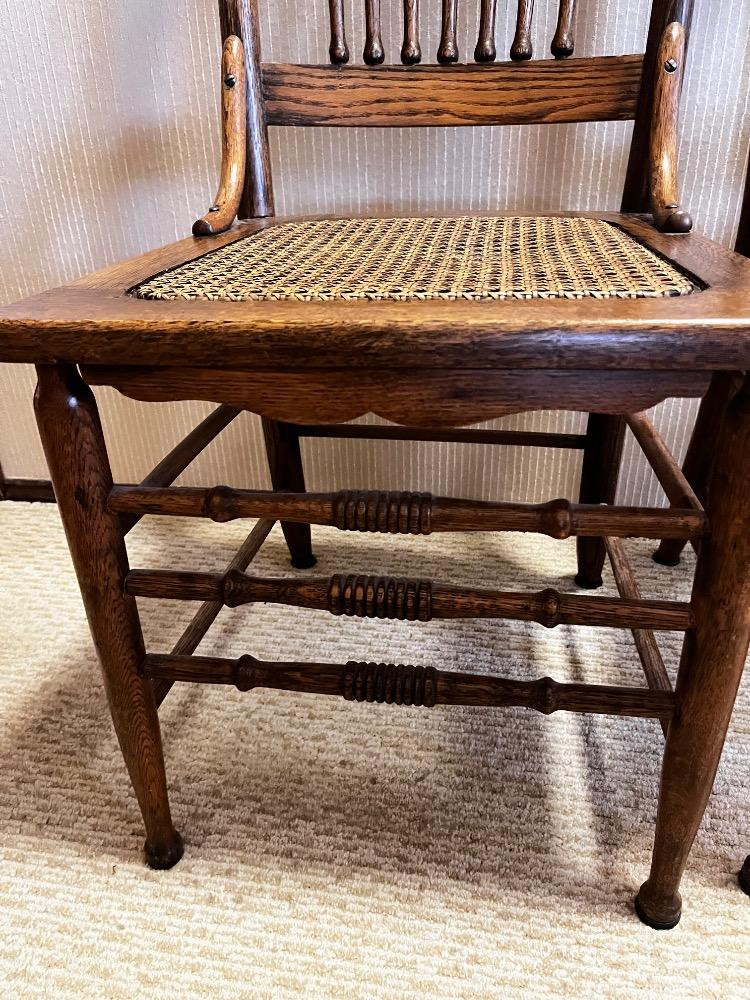 Pair of Oak Spindle Back Chairs w/ Woven Cane Seats & Cushions. Oak Chair #1 :