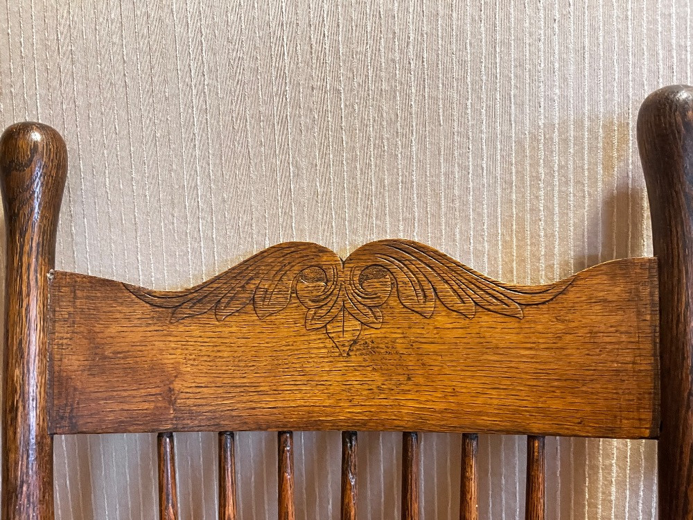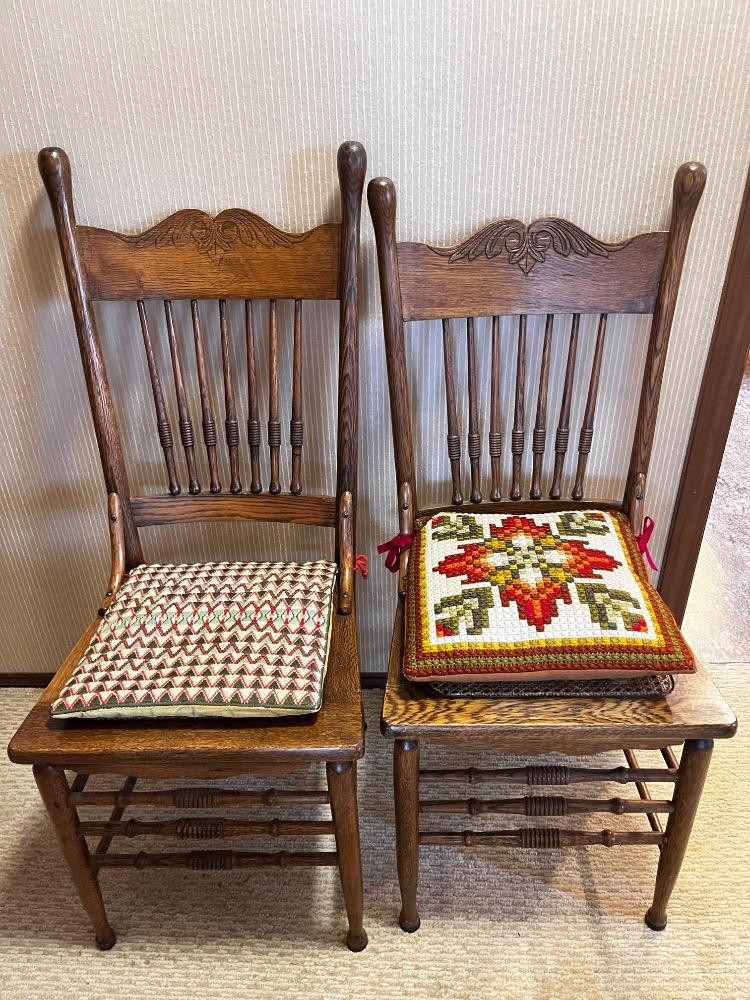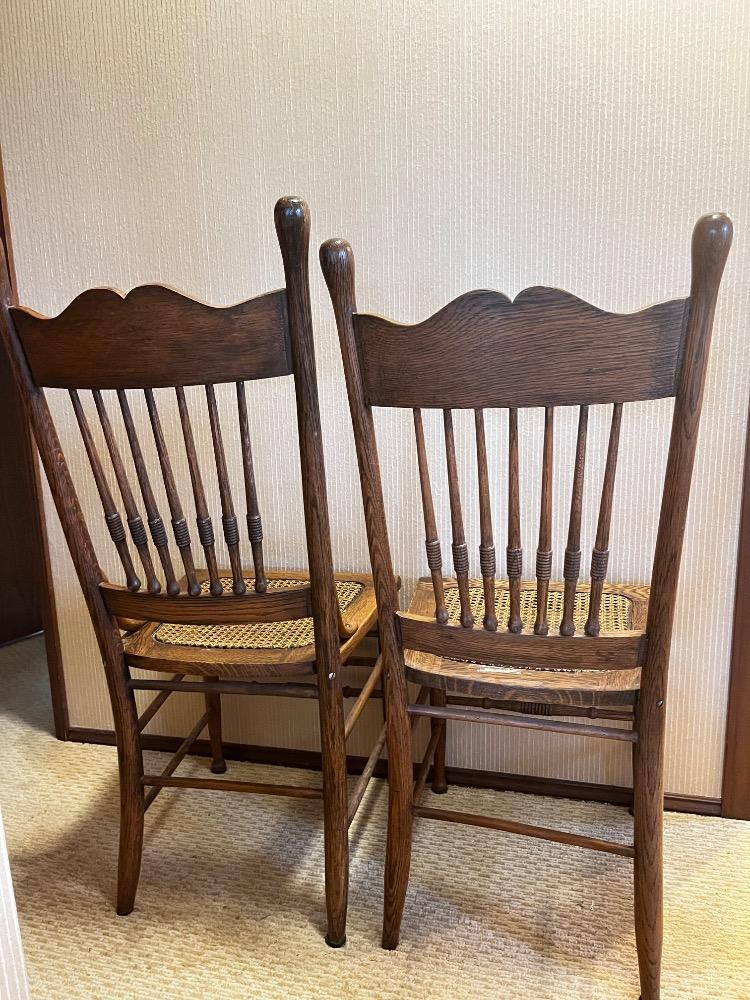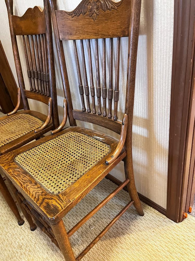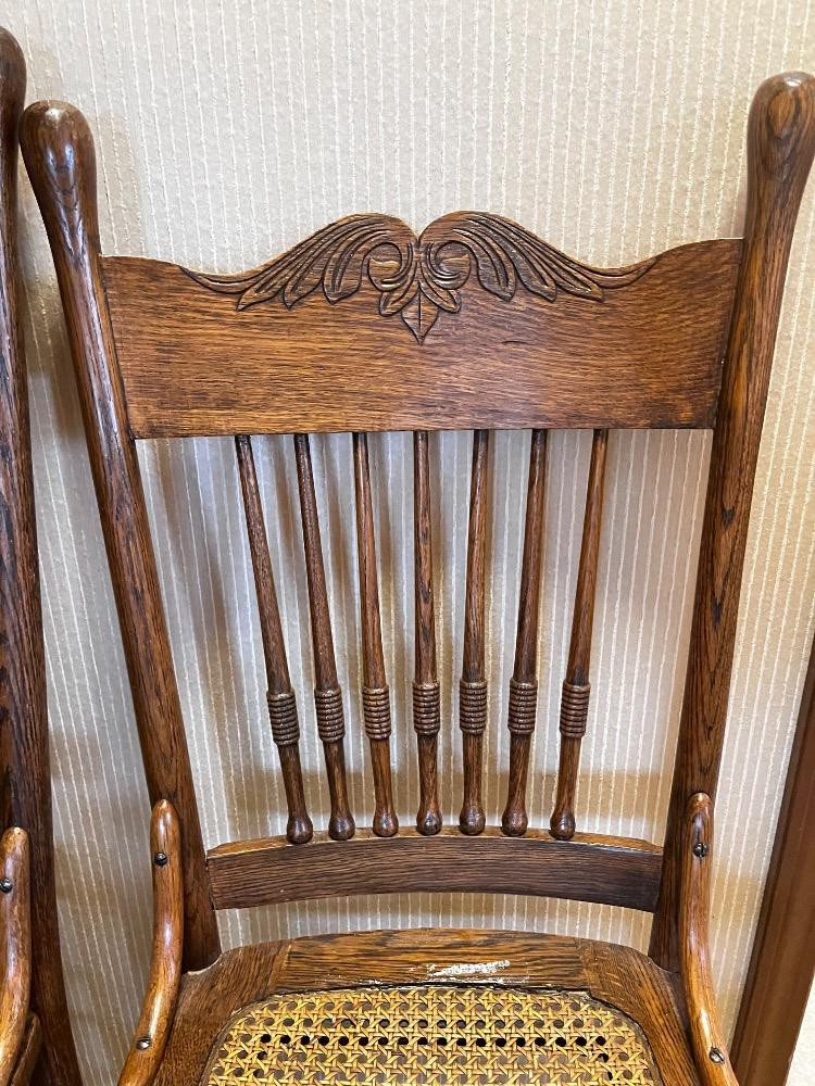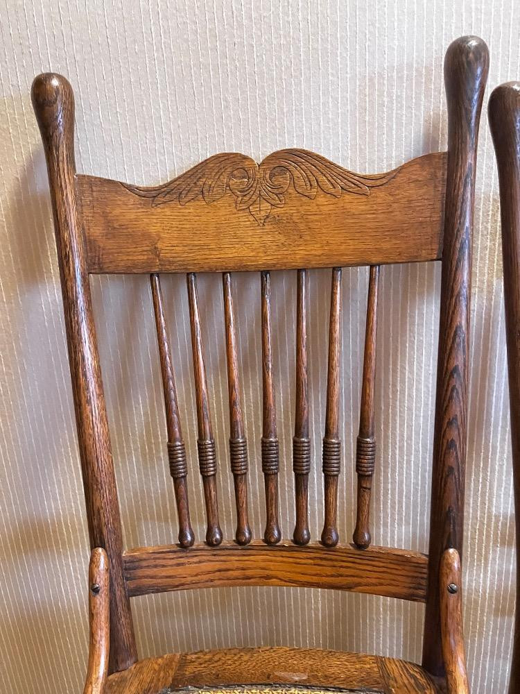 Pair of Oak Spindle Back Chairs w/ Woven Cane Seats & Cushions. Oak Chair #1 :