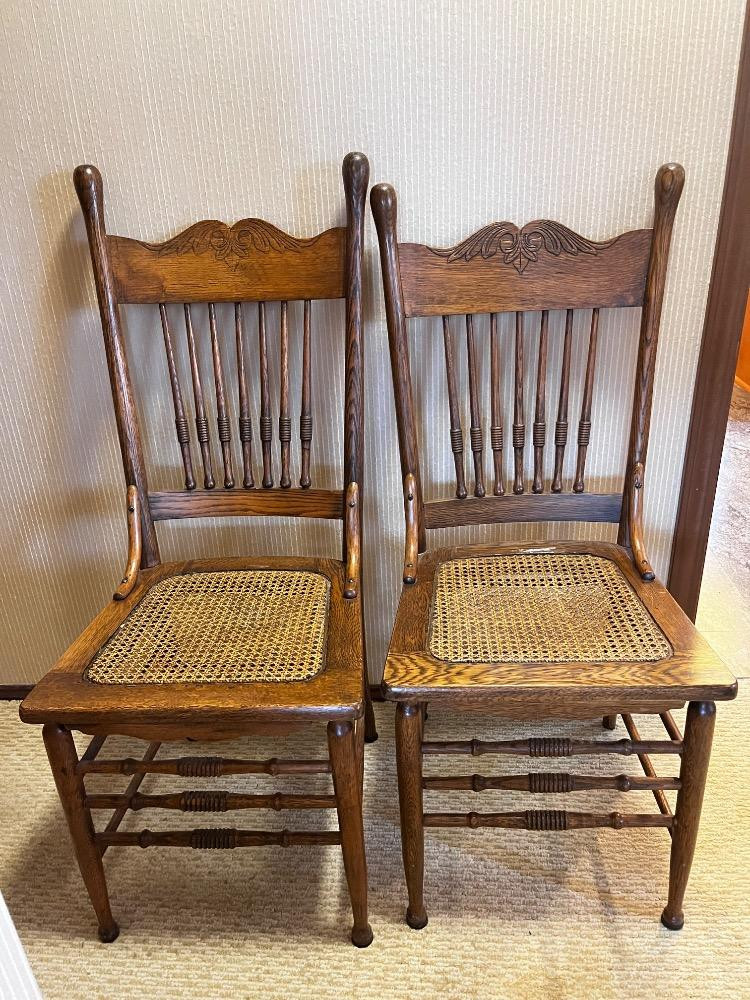 Lot # 14 - Pair of Oak Spindle Back Chairs w/ Woven Cane Seats & Cushions