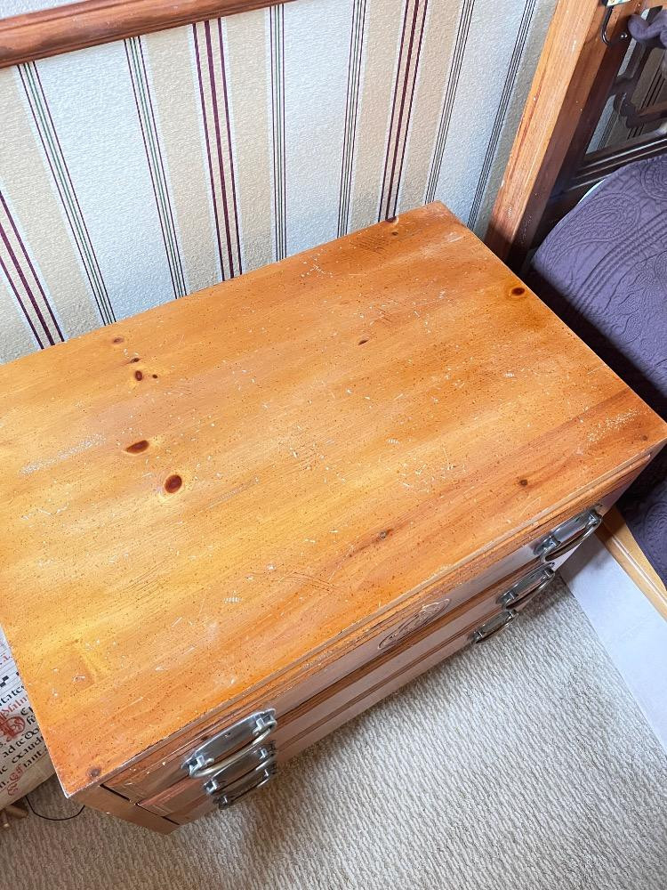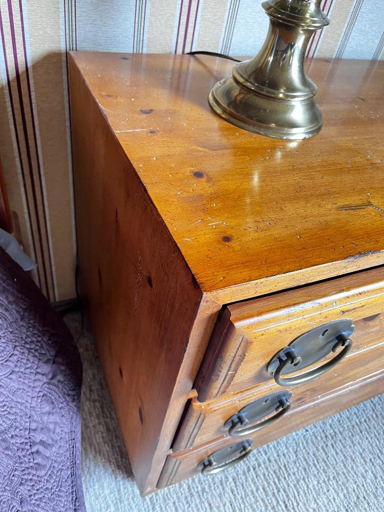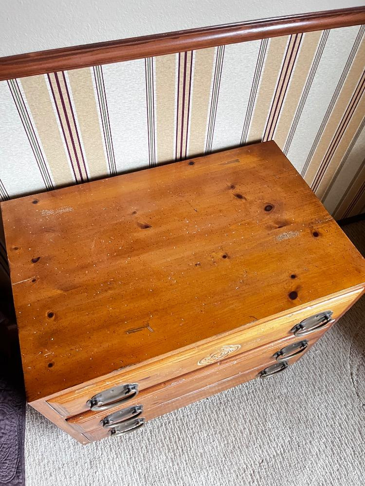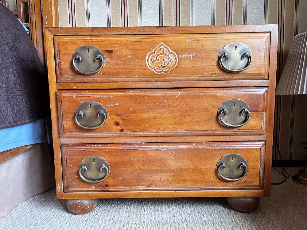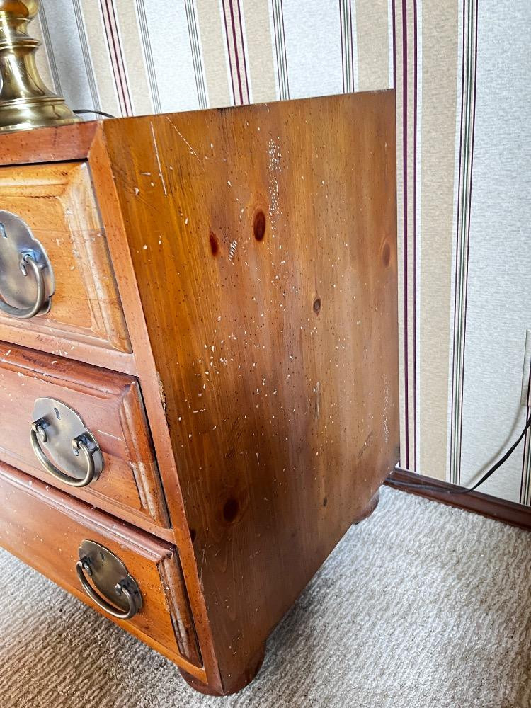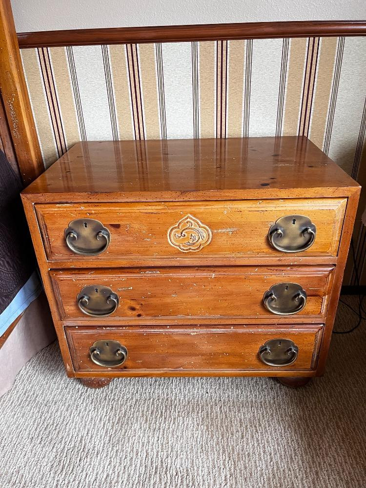 Pair of Vintage Henredon Asian-Inspired Pine 3-Drawer Night Chests. Estimated Dimensions: Height: 25" Depth: 18" Bidding on this lot is an agreement that: (1.) You will have at least 2 capable, able bodied persons to lift and load at a minimum. (2.) You will bring a hand truck and/or any other tools needed to remove this item. If these steps are not followed your item will be forfeit and no refund given.