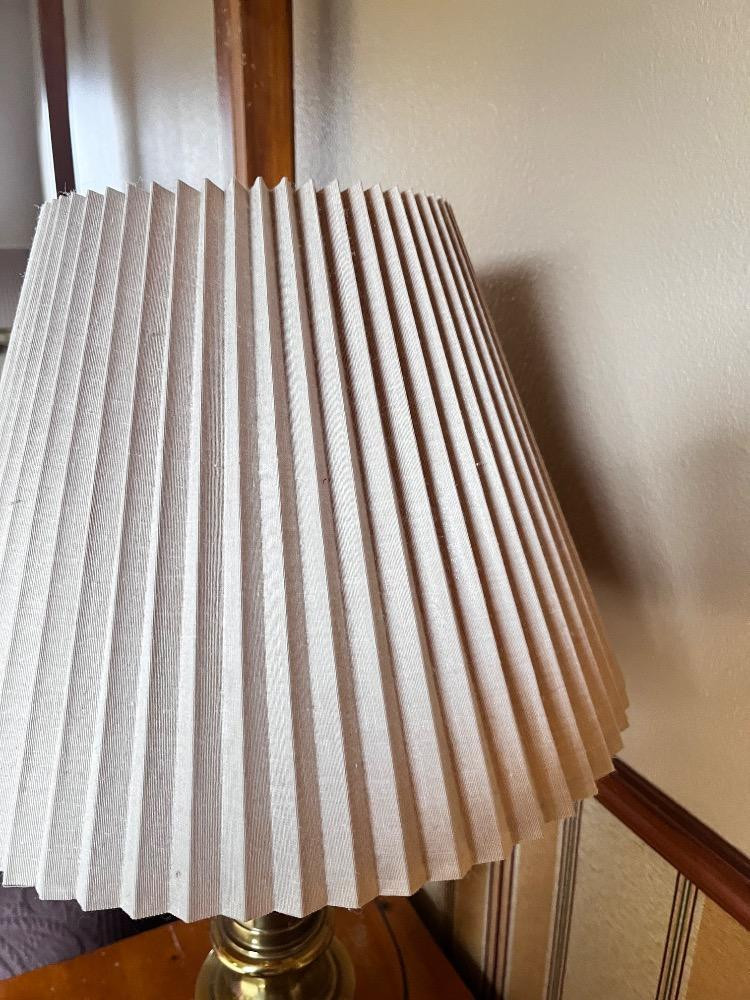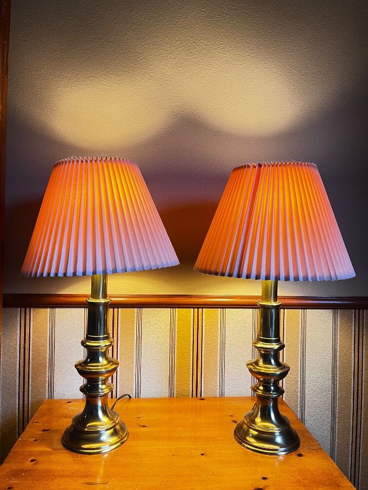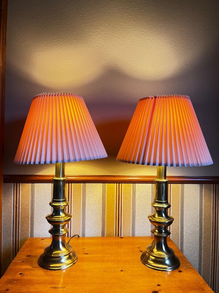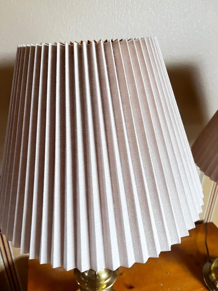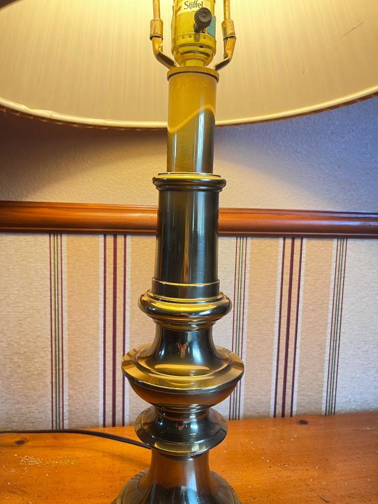 Pair of Vintage Stiffel Solid Brass Table Lamps w/ Pleated Shades. Lamp Height: 26"