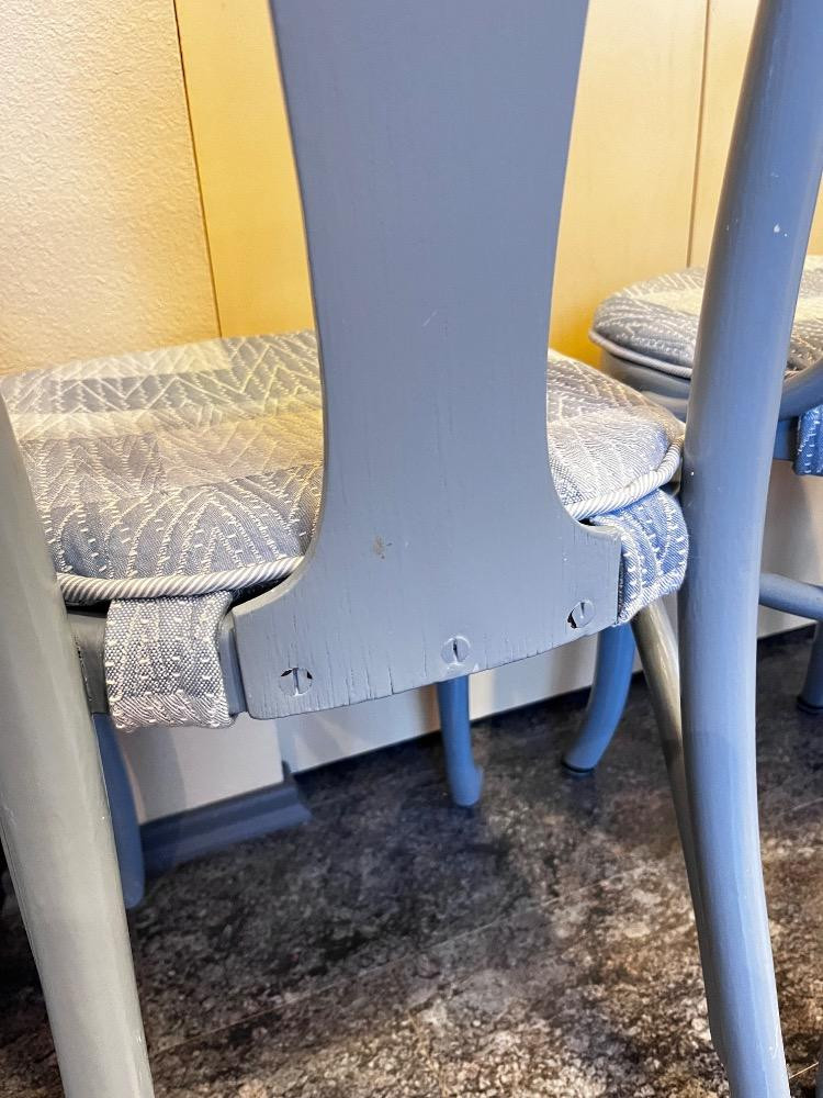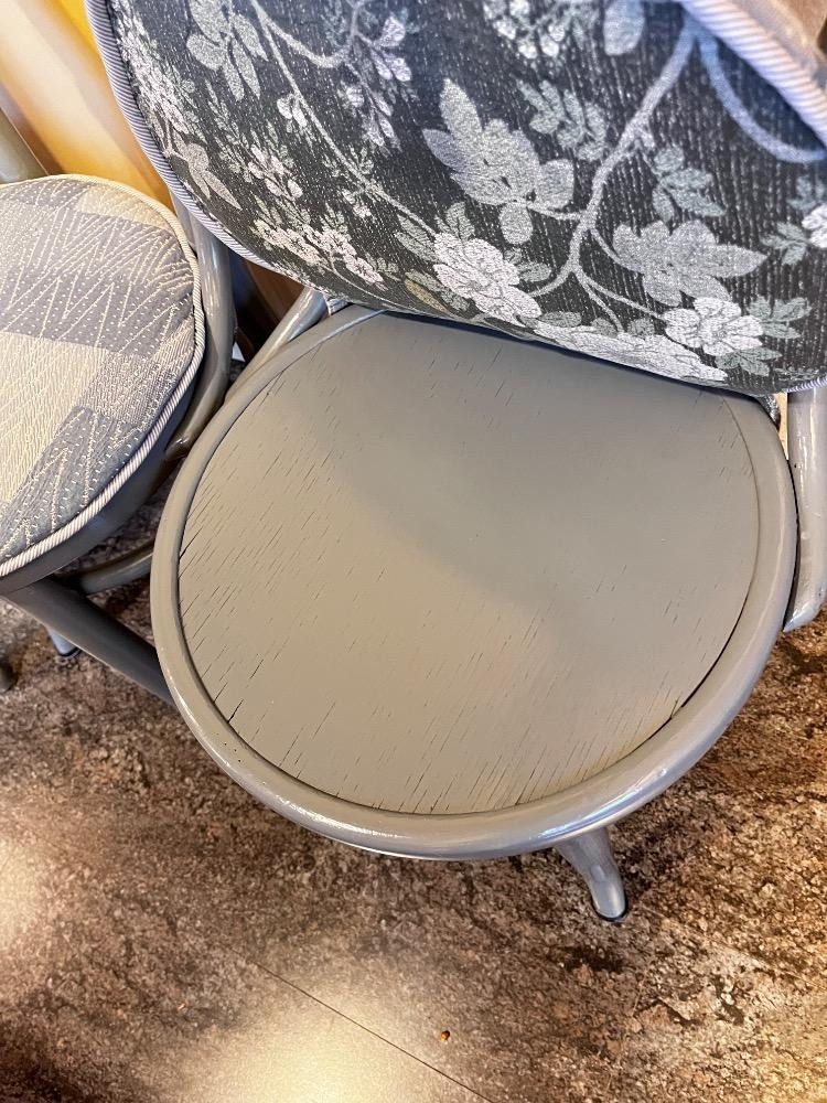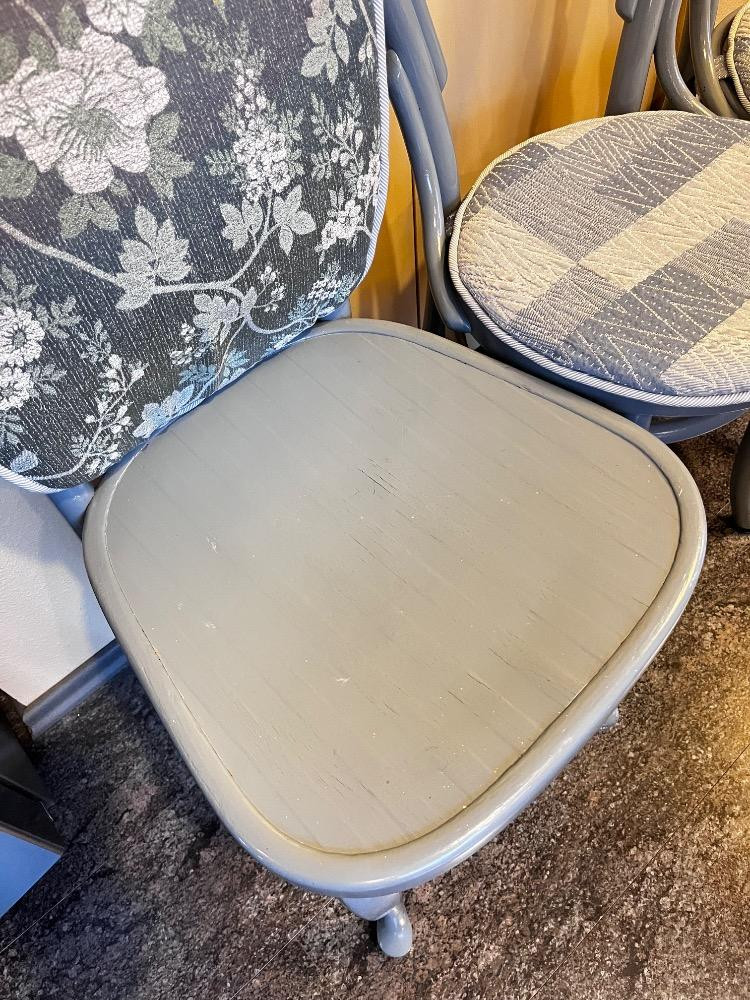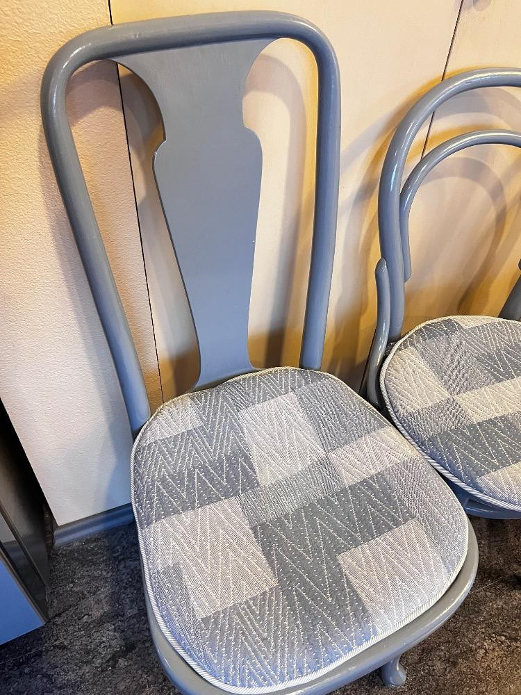 Set of 3 Bentwood Chairs – Painted Gray w/ Upholstered Seats. 16" L x 18"W
