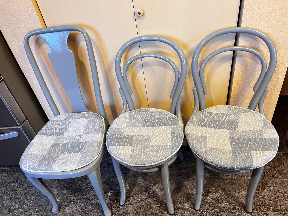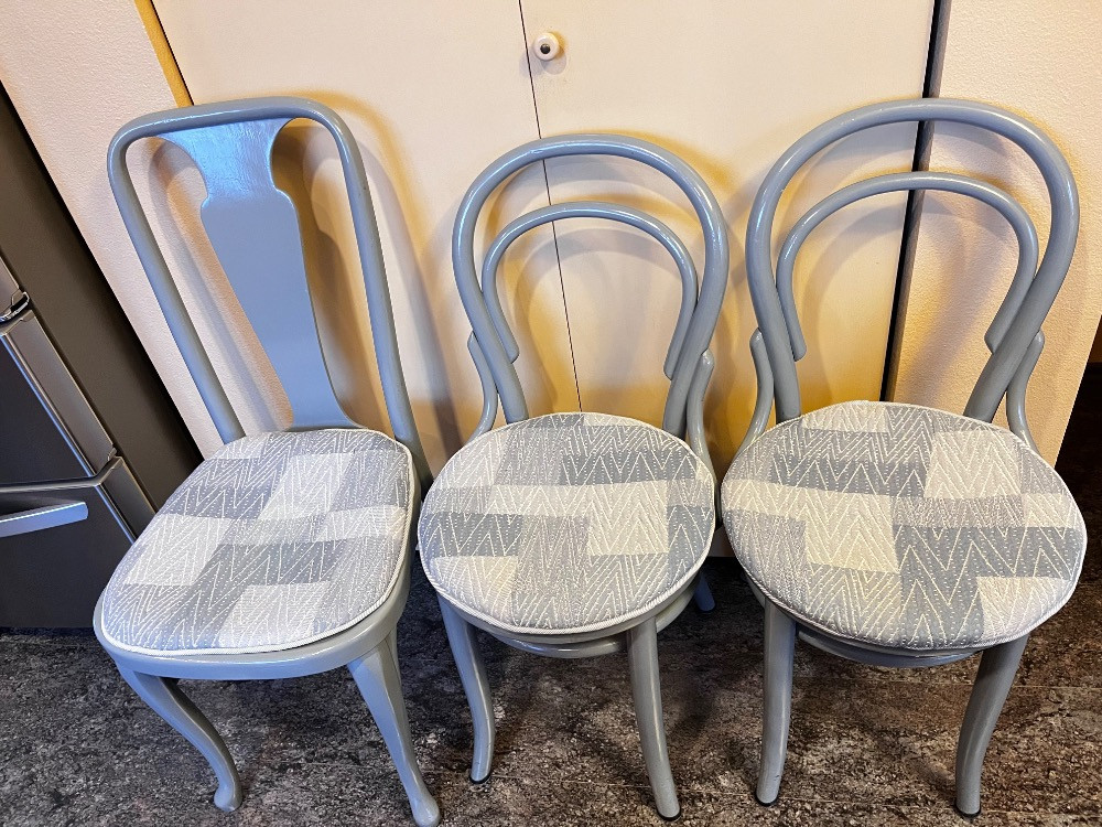 Lot # 20 - Set of 3 Bentwood Chairs – Painted Gray w/ Upholstered Seats
