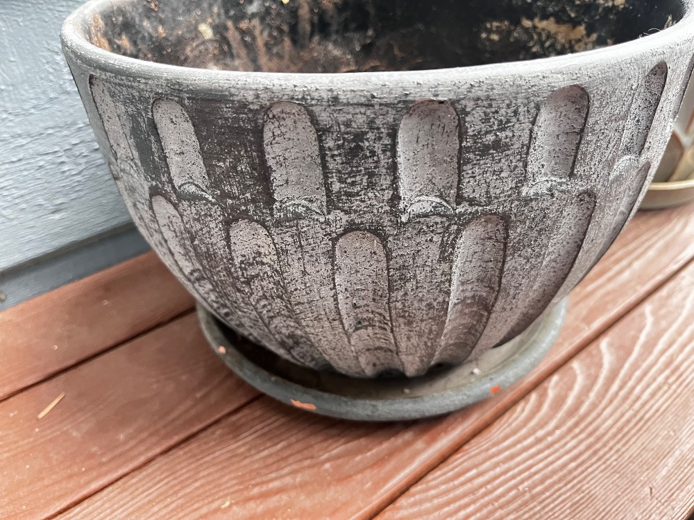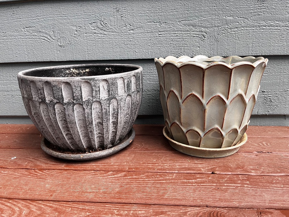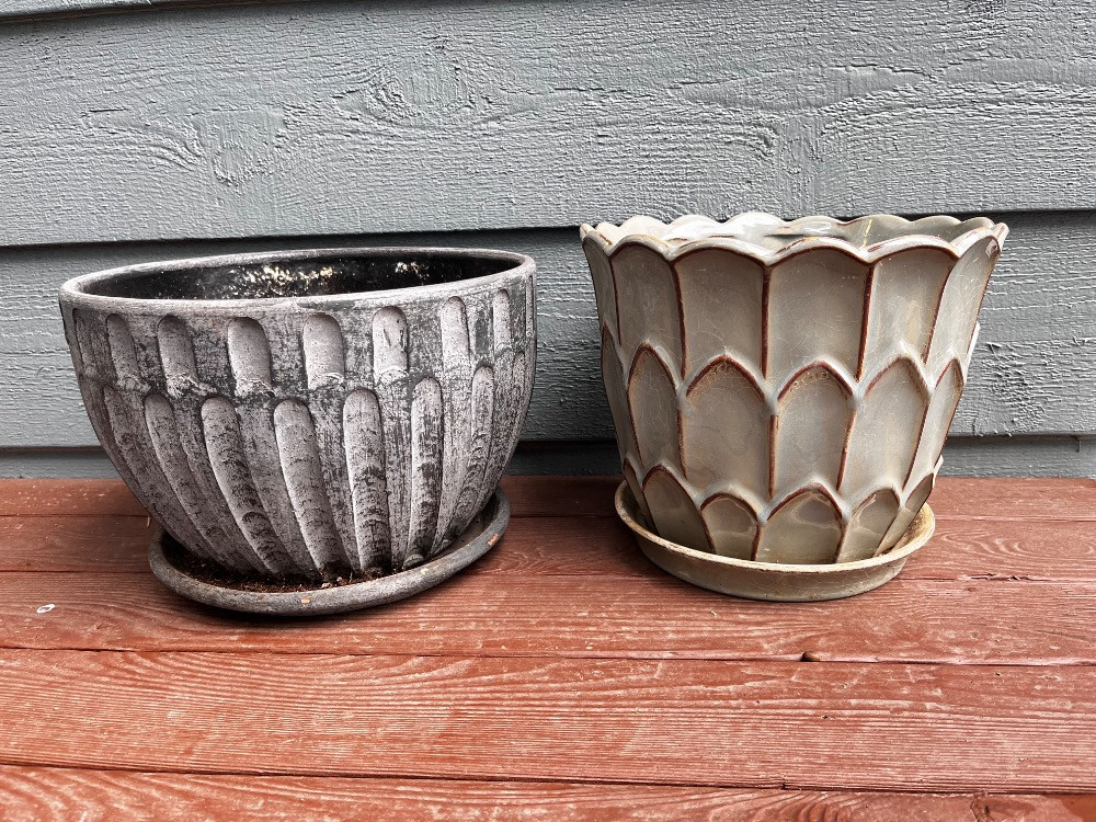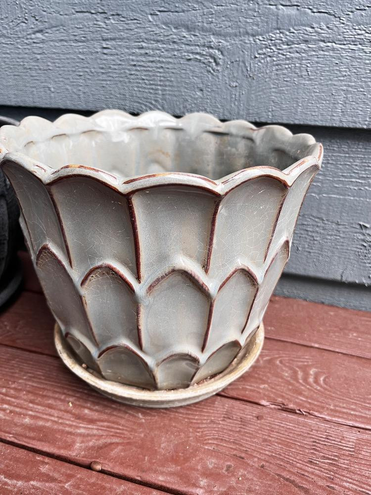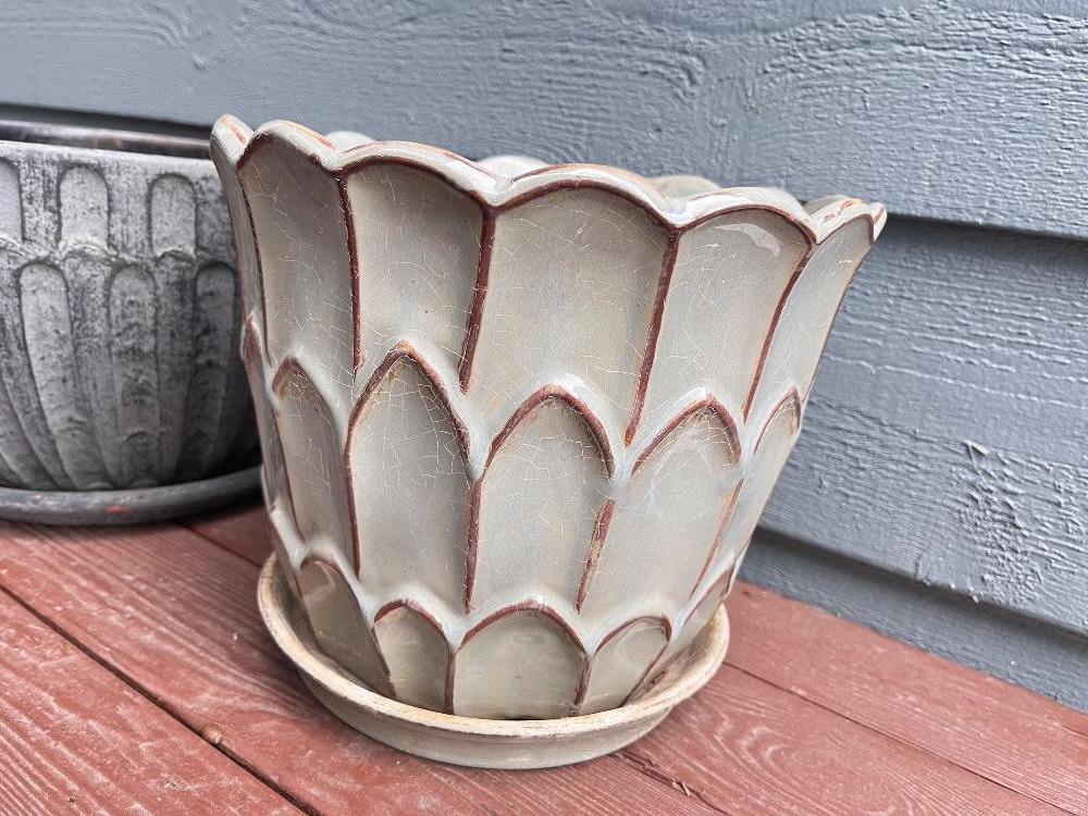 Pair of Decorative Ceramic Planters – Artichoke & Cockleshell Designs. 8 - 8 1/2" Height