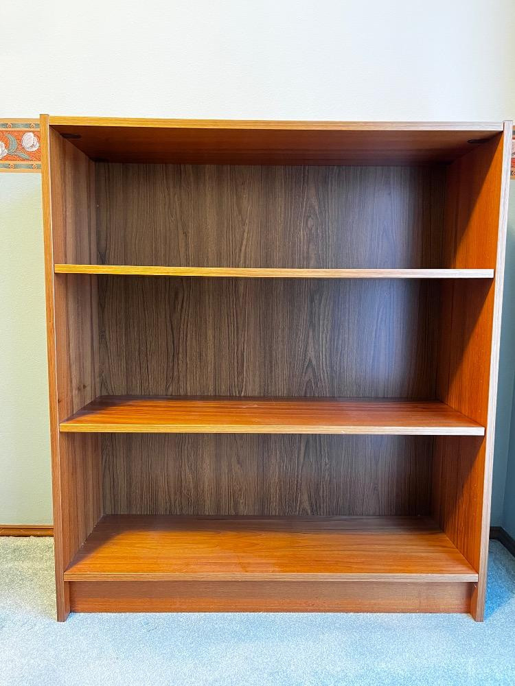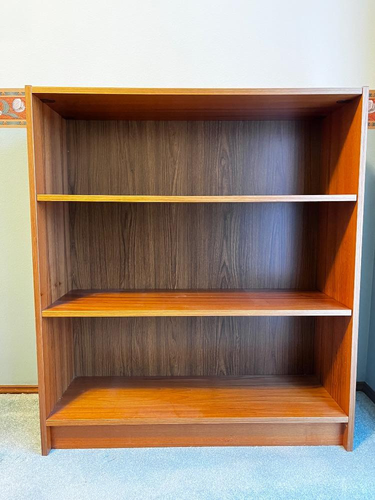 Lot # 26 - Wooden Bookshelf – Three-Tier Storage w/ Warm Woodgrain Finish