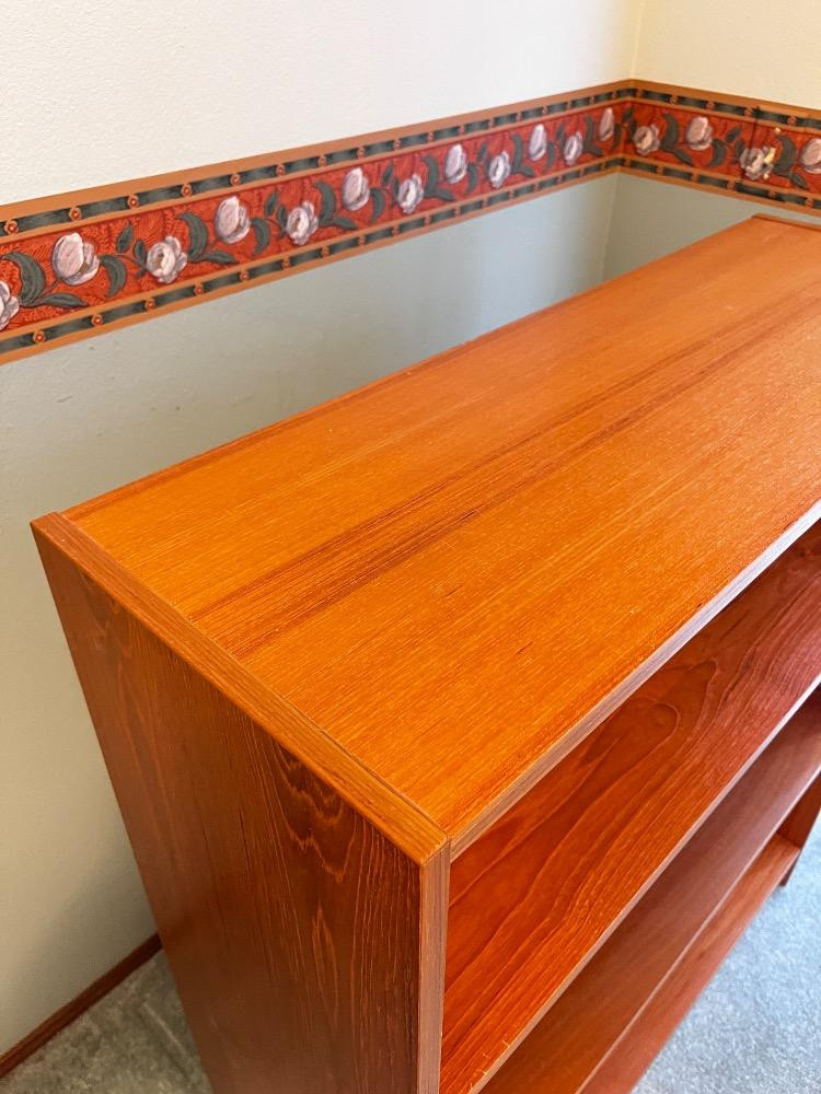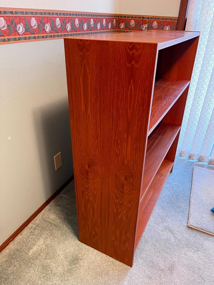 Wooden Bookshelf – Three-Tier Storage w/ Warm Woodgrain Finish. 35 1/2" L x 12 1/2" W x 40 1/2"H Bidding on this lot is an agreement that: (1.) You will have at least 2 capable, able bodied persons to lift and load at a minimum. (2.) You will bring a hand truck and/or any other tools needed to remove this item. If these steps are not followed your item will be forfeit and no refund given.