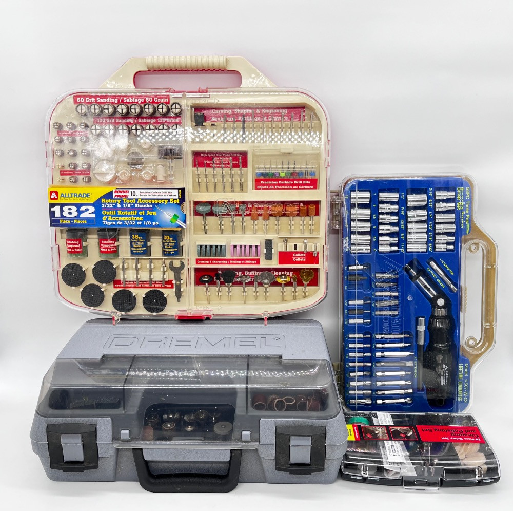 Dremel 2000 Kit, ALLTRADE 182pc Set, Ratchet Driver Set & More! Alltrade 182 Piece Rotary Tool Accessory Set 53-Piece Position Reversible Ratchet Driver Set Dremel 2000 Speed Rotary Tool Kit