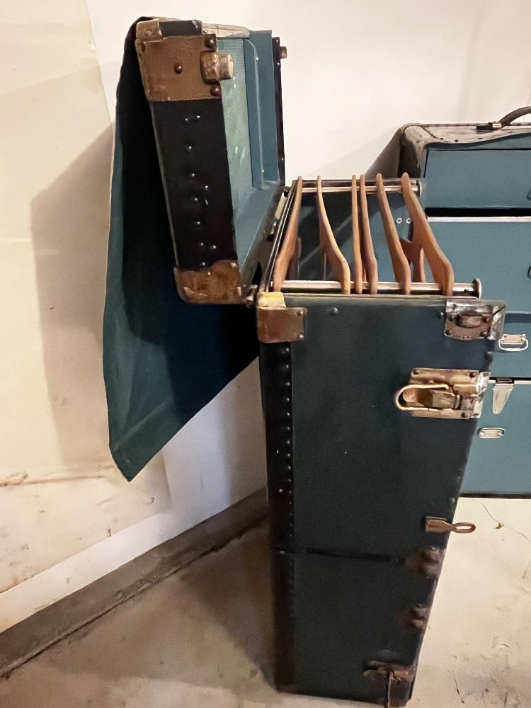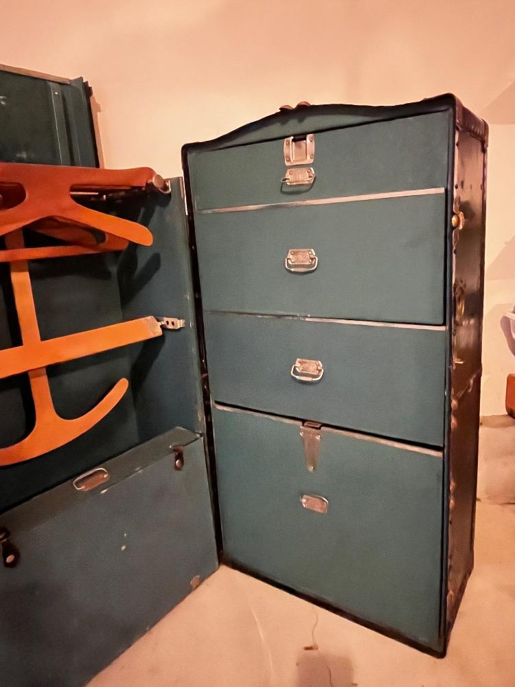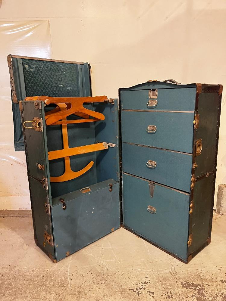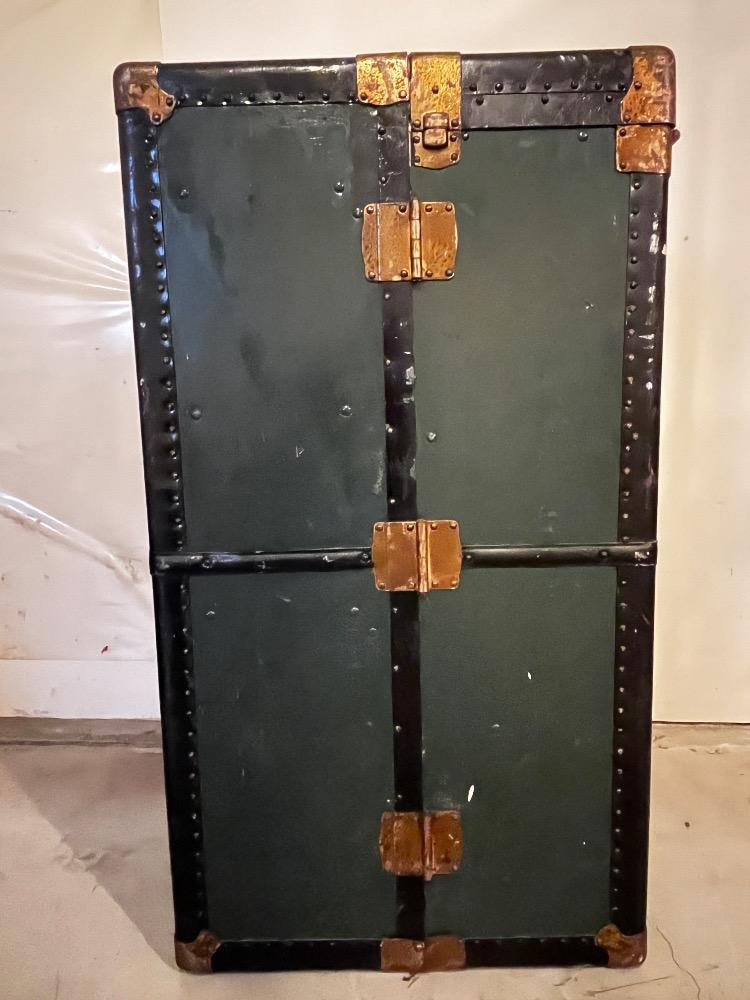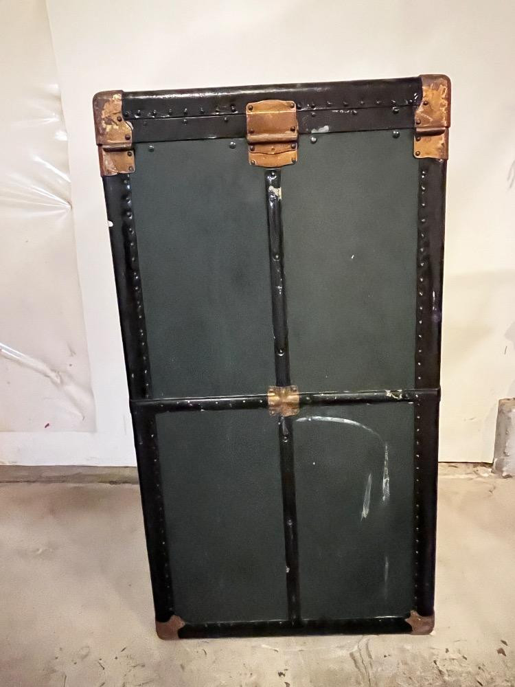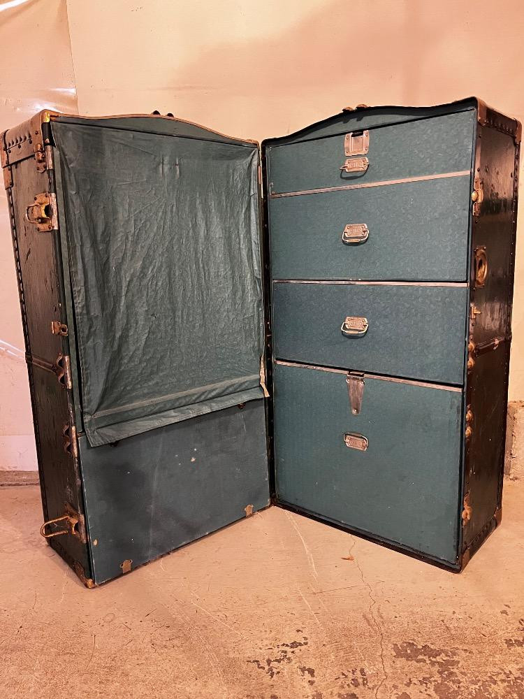 Vintage A&J Levin Steamer Trunk – Wardrobe Travel Chest w/ Drawers. Bidding on this lot is an agreement that: (1.) You will have at least 2 capable, able bodied persons to lift and load at a minimum. (2.) You will bring a hand truck and/or any other tools needed to remove this item. If these steps are not followed your item will be forfeit and no refund given.