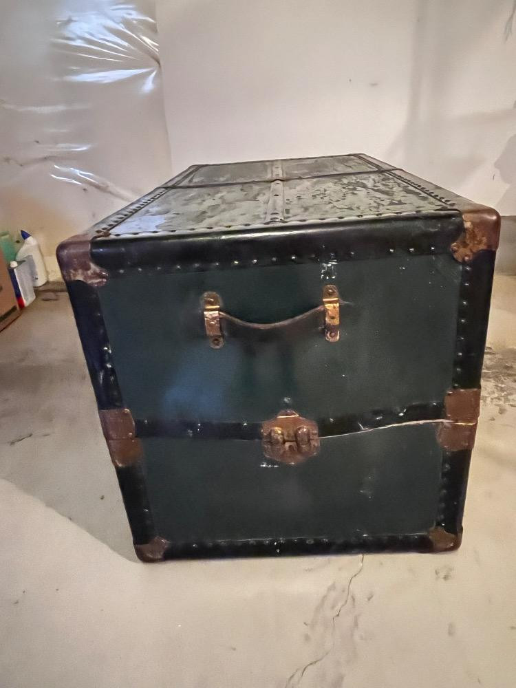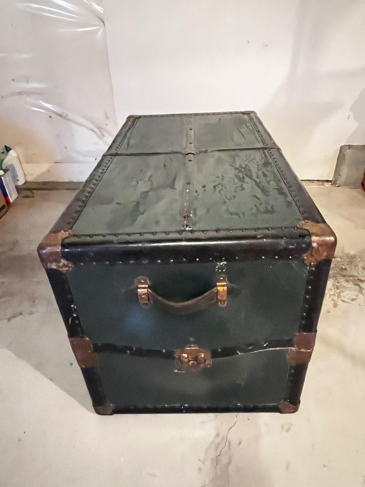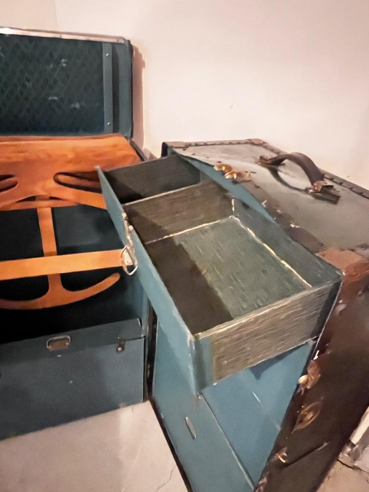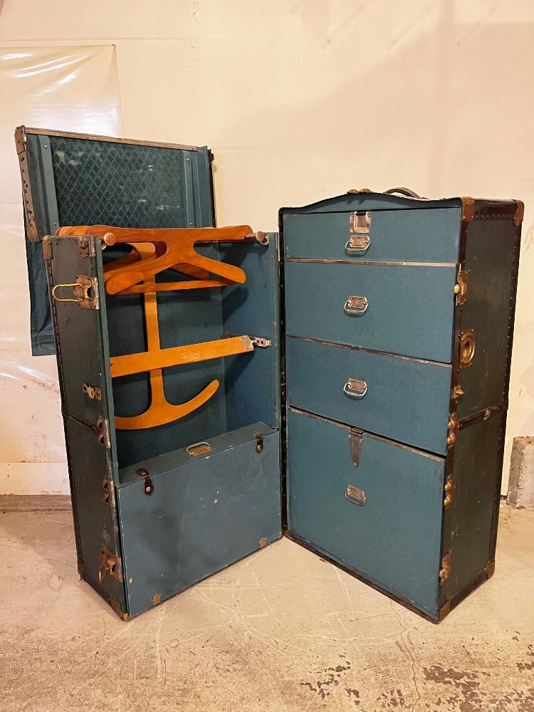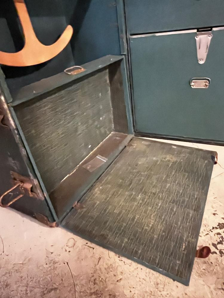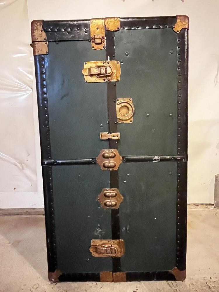 Vintage A&J Levin Steamer Trunk – Wardrobe Travel Chest w/ Drawers. Bidding on this lot is an agreement that: (1.) You will have at least 2 capable, able bodied persons to lift and load at a minimum. (2.) You will bring a hand truck and/or any other tools needed to remove this item. If these steps are not followed your item will be forfeit and no refund given.
